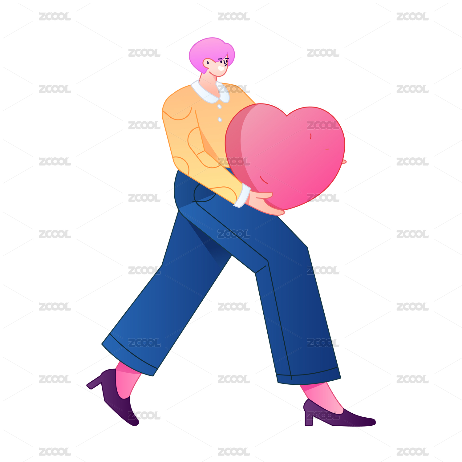 手拿爱心动作造型的人物矢量扁平渐变插画