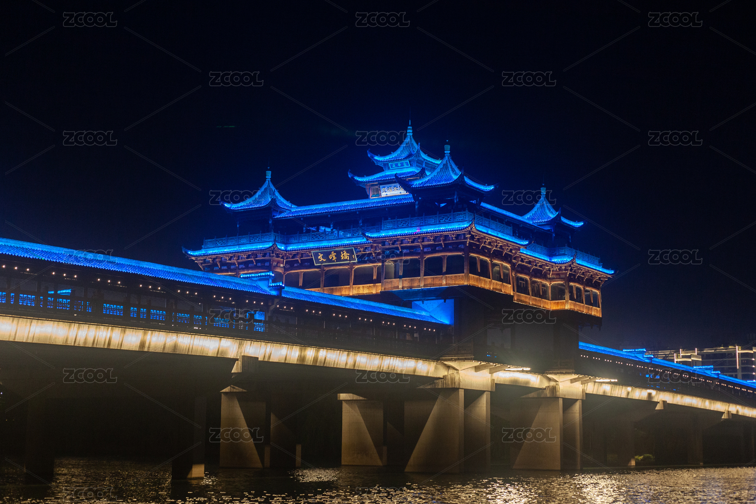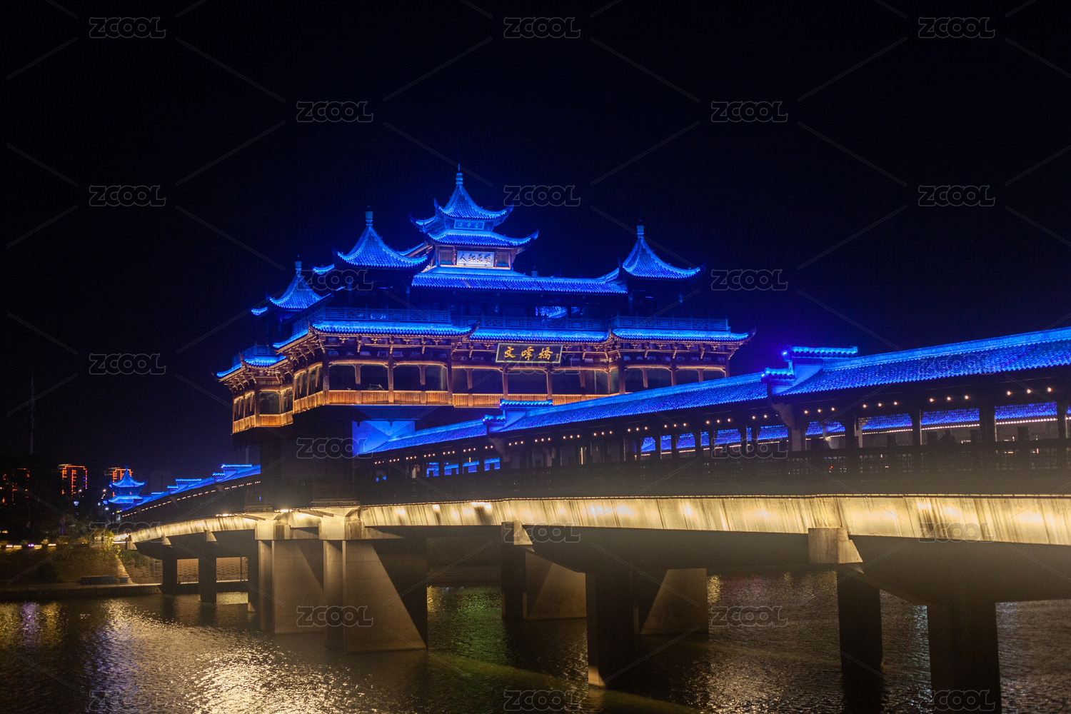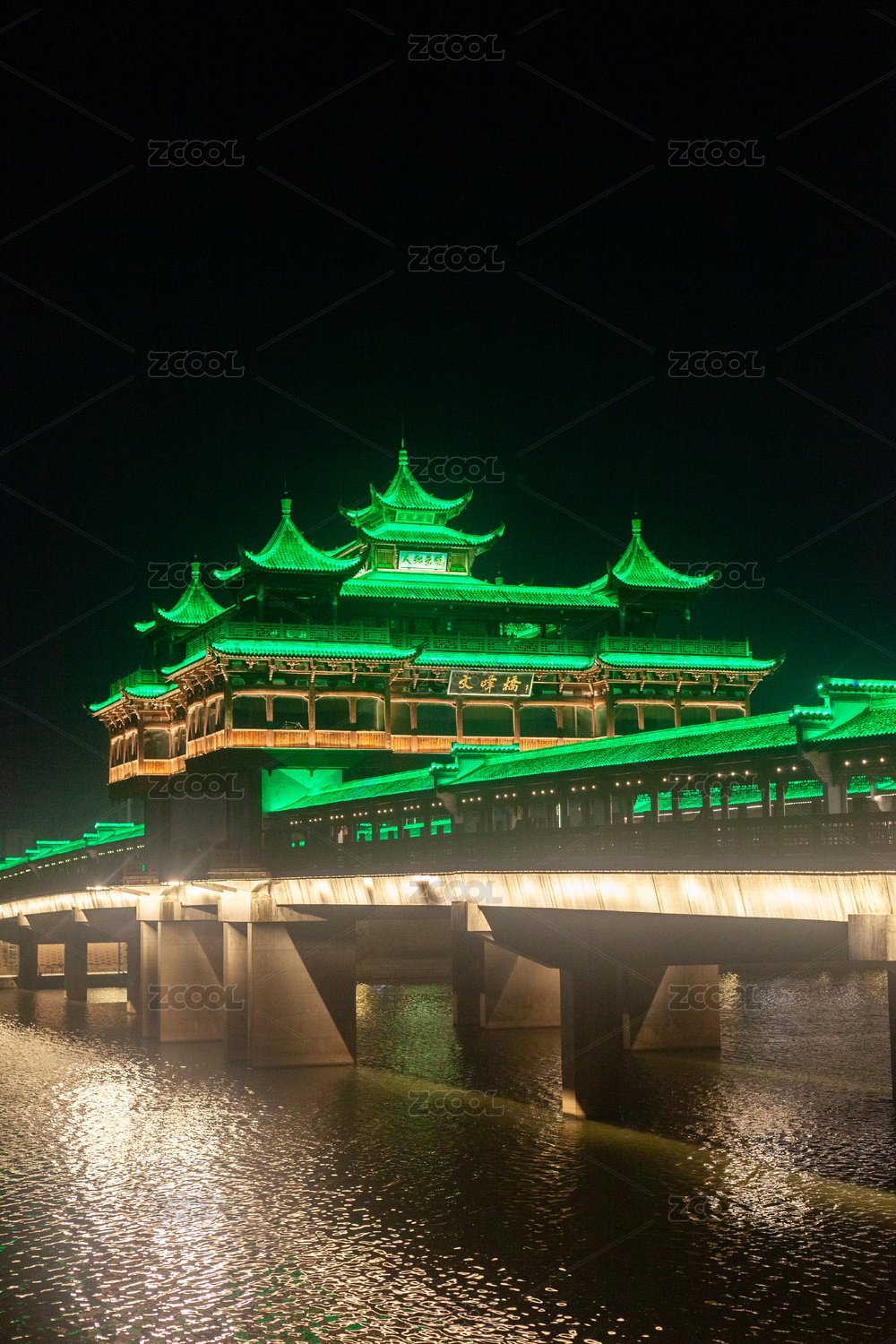 古建筑,夜景,中式建筑,传统建筑,夜晚,屯溪,新安江,桥梁,文峰桥,河流