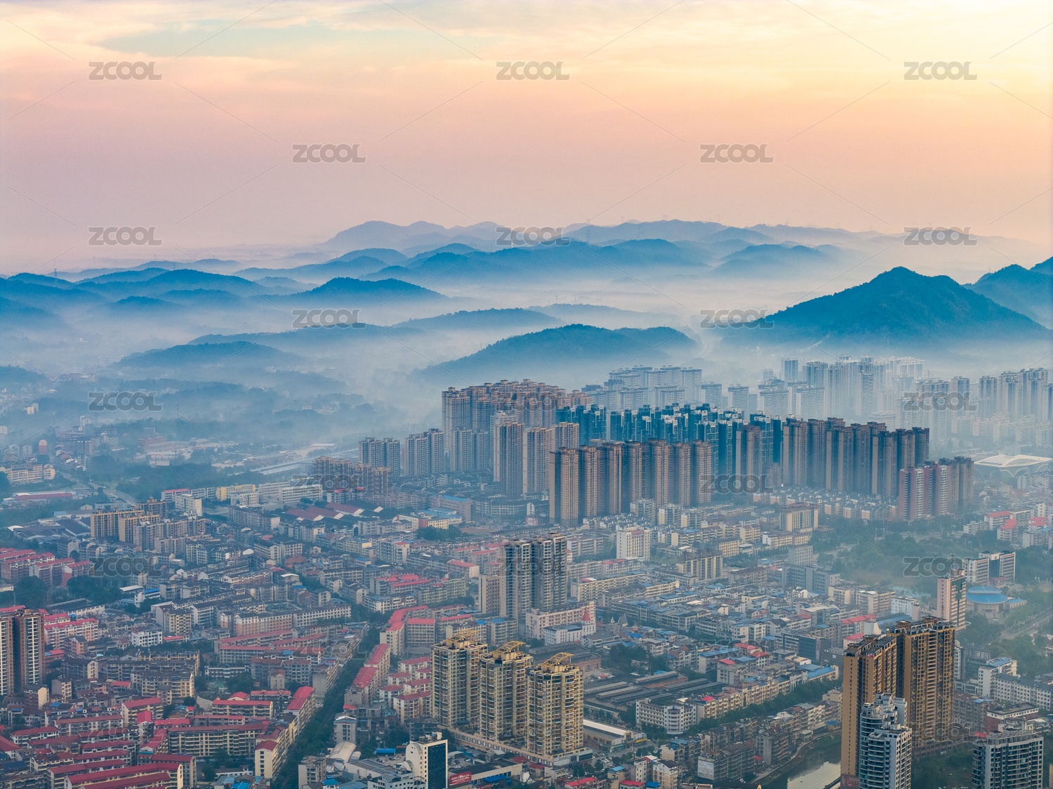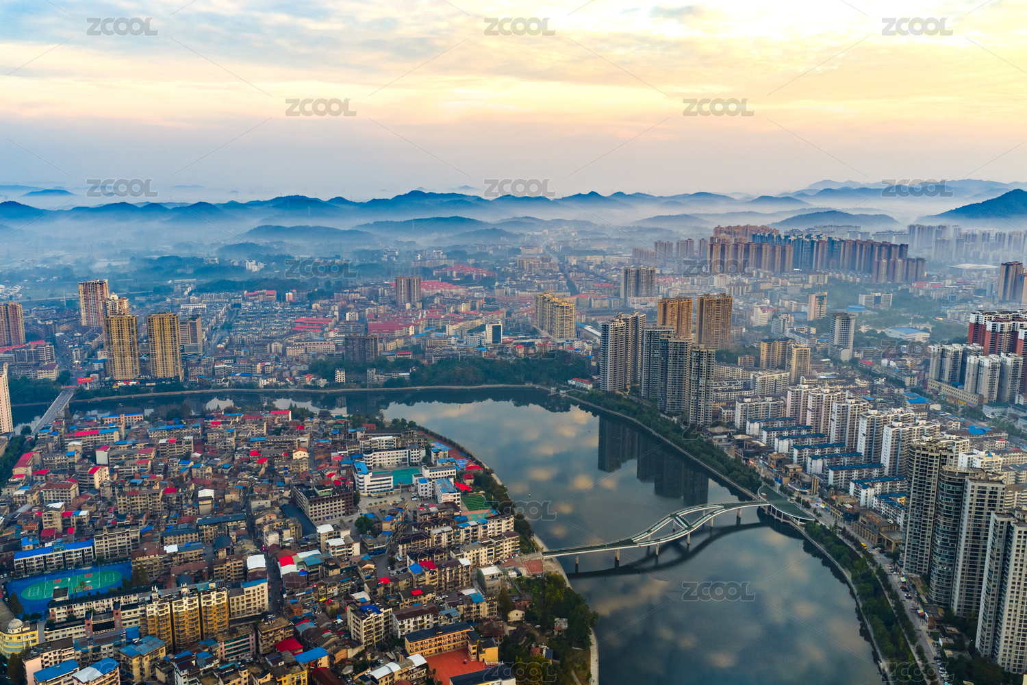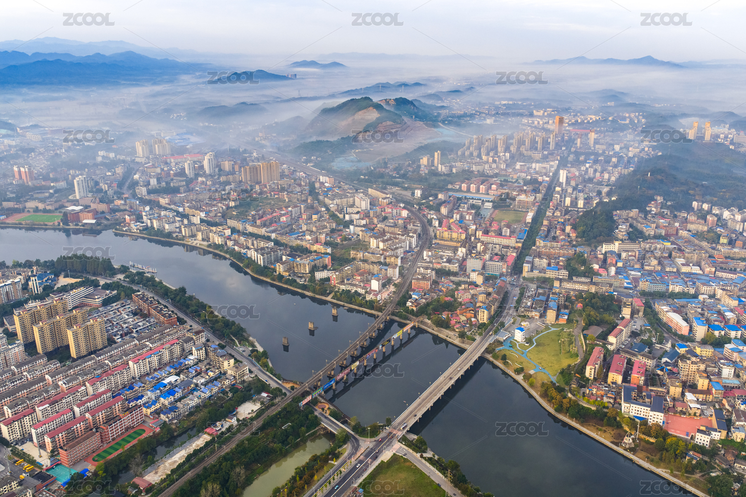咸宁,赤壁,航拍,湖北,城市,县城,长江,陆水湖,薄雾,河流