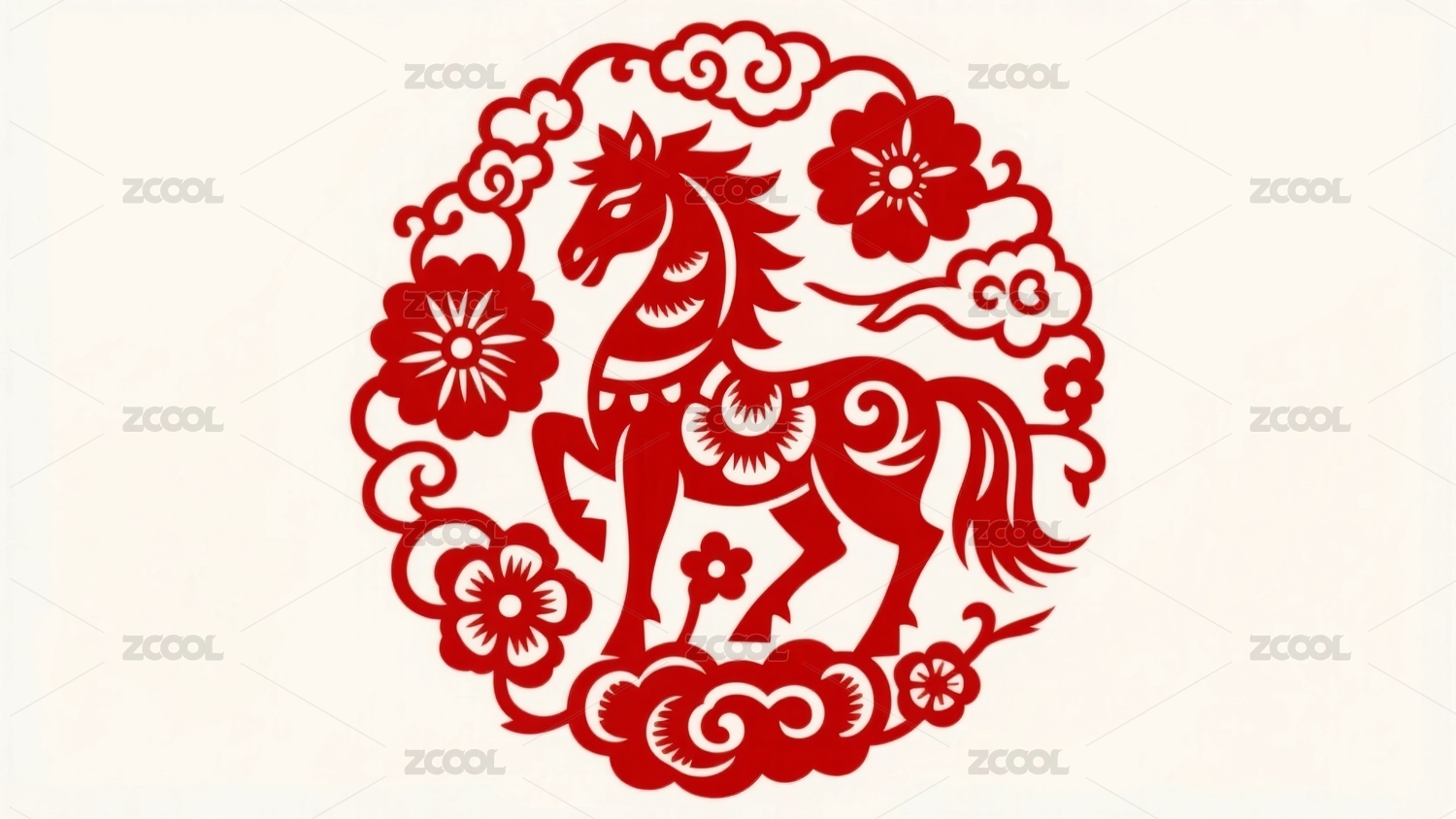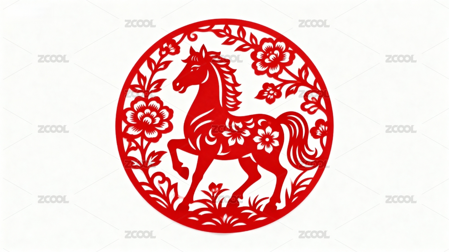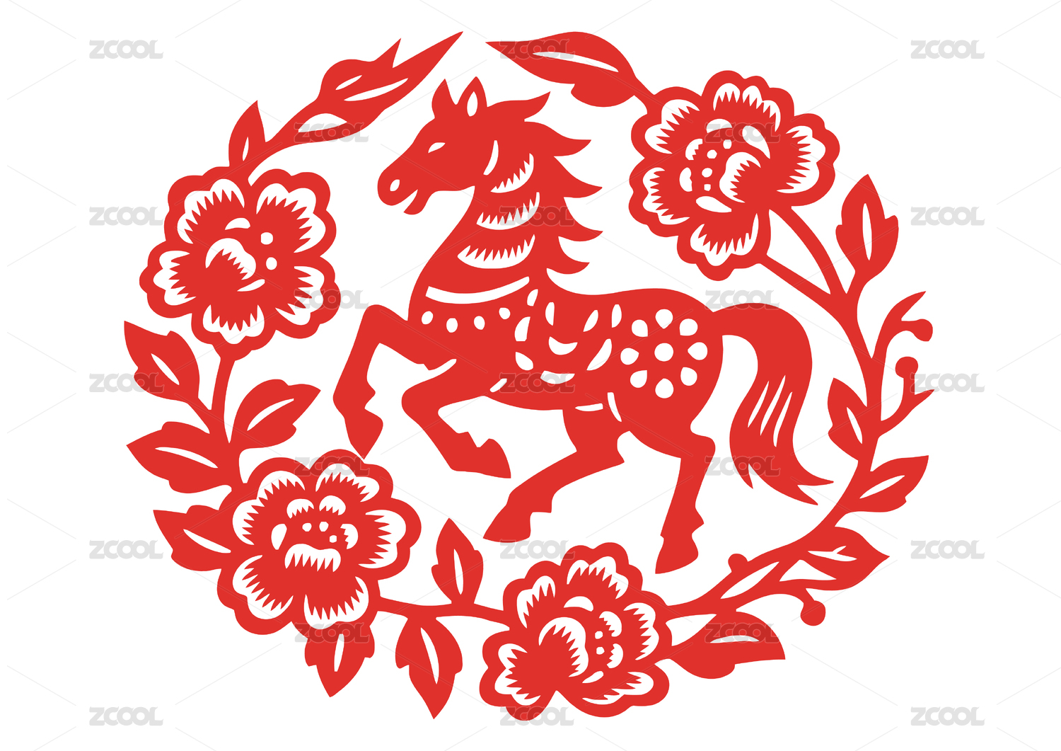红色剪纸艺术生肖马图案