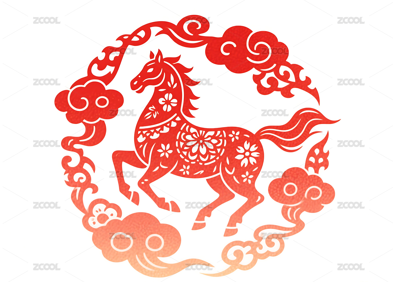 红色马踏祥云图案剪纸