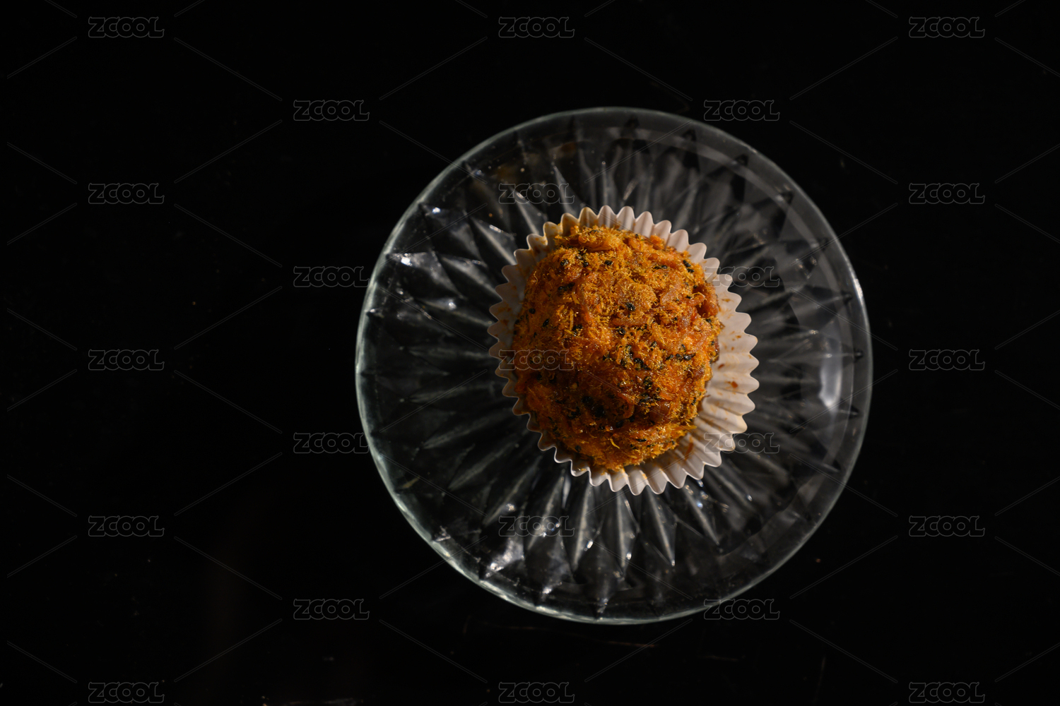 桌面上的盘子里的美味可口的芝士肉松蛋糕