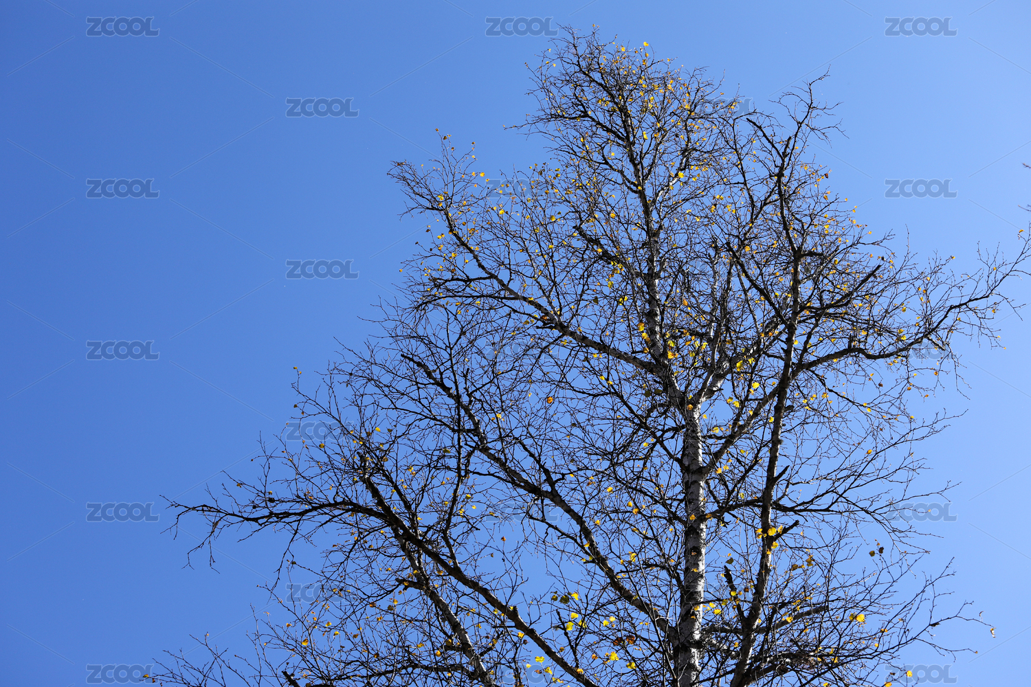 秋天晴朗蓝天下叶子变得金黄的杨树