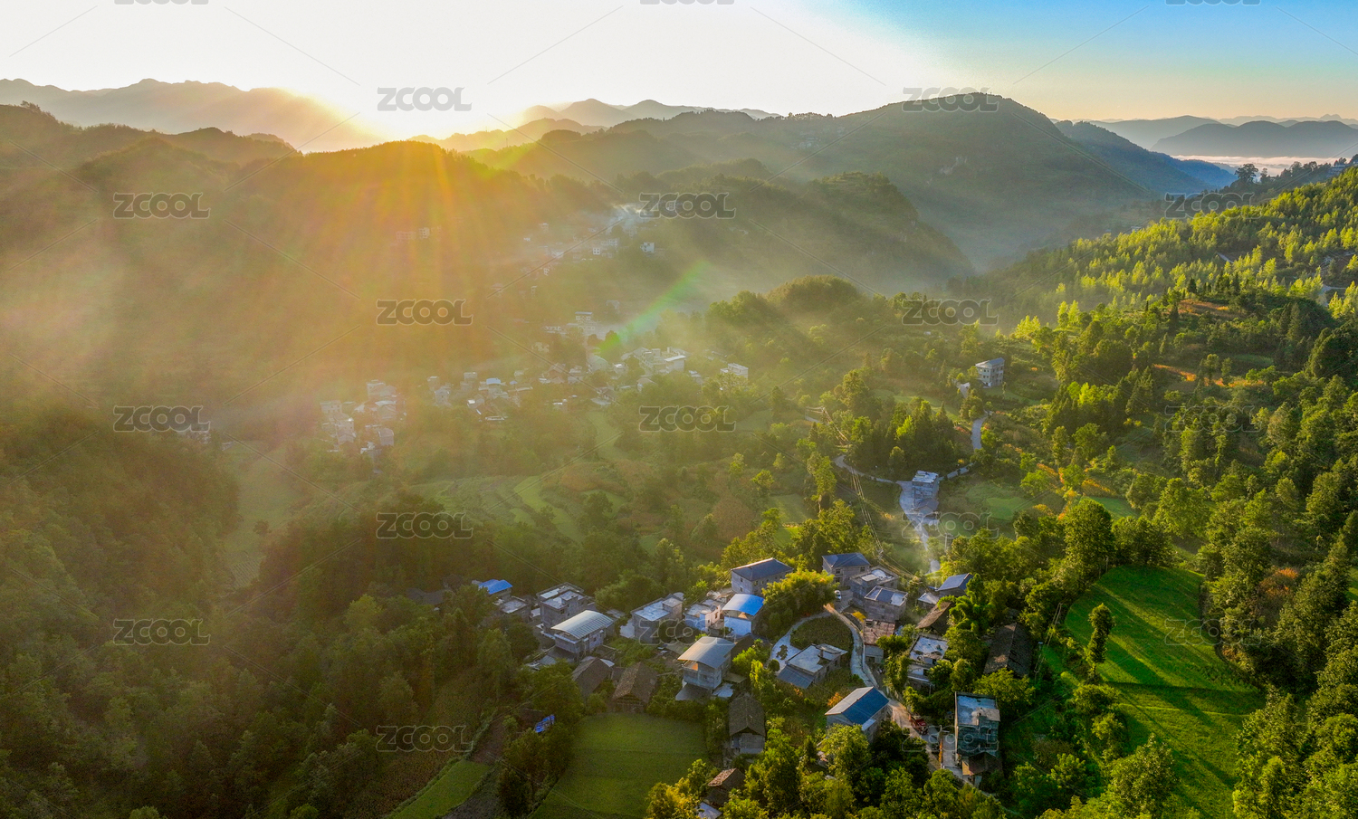 航拍江西省婺源县皇岭古镇自然建筑风光