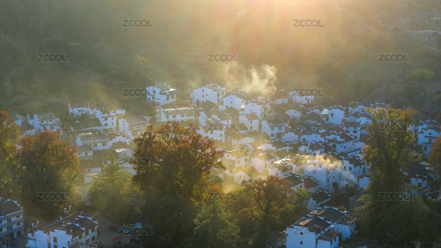 中国江西上饶婺源石城秋色炊烟
