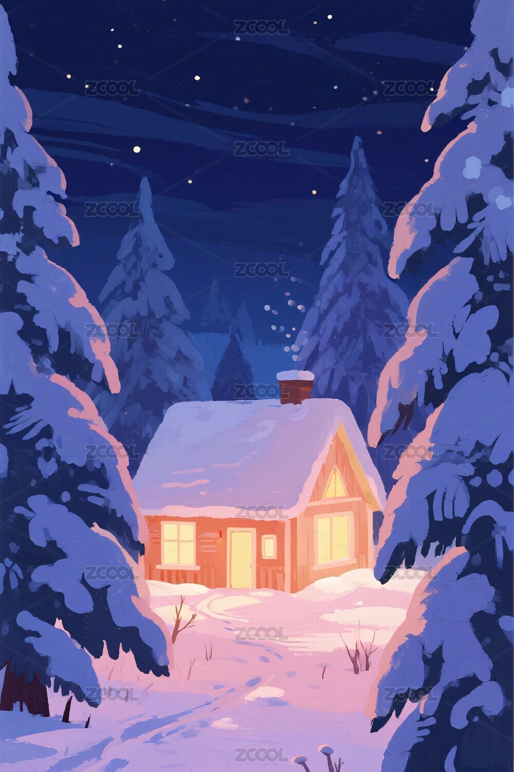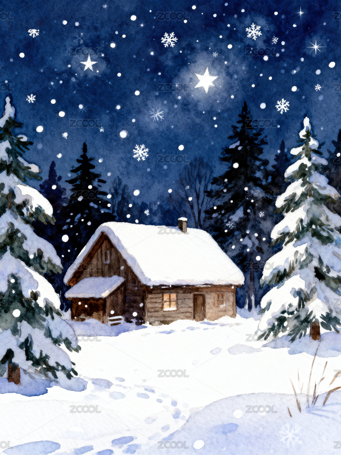 雪屋,雪景,冬季,山林,夜空,星空,雪花,房屋,树木,山脉