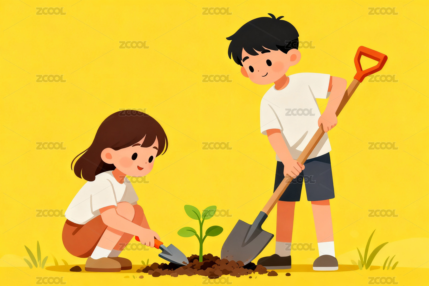 卡通男孩种树