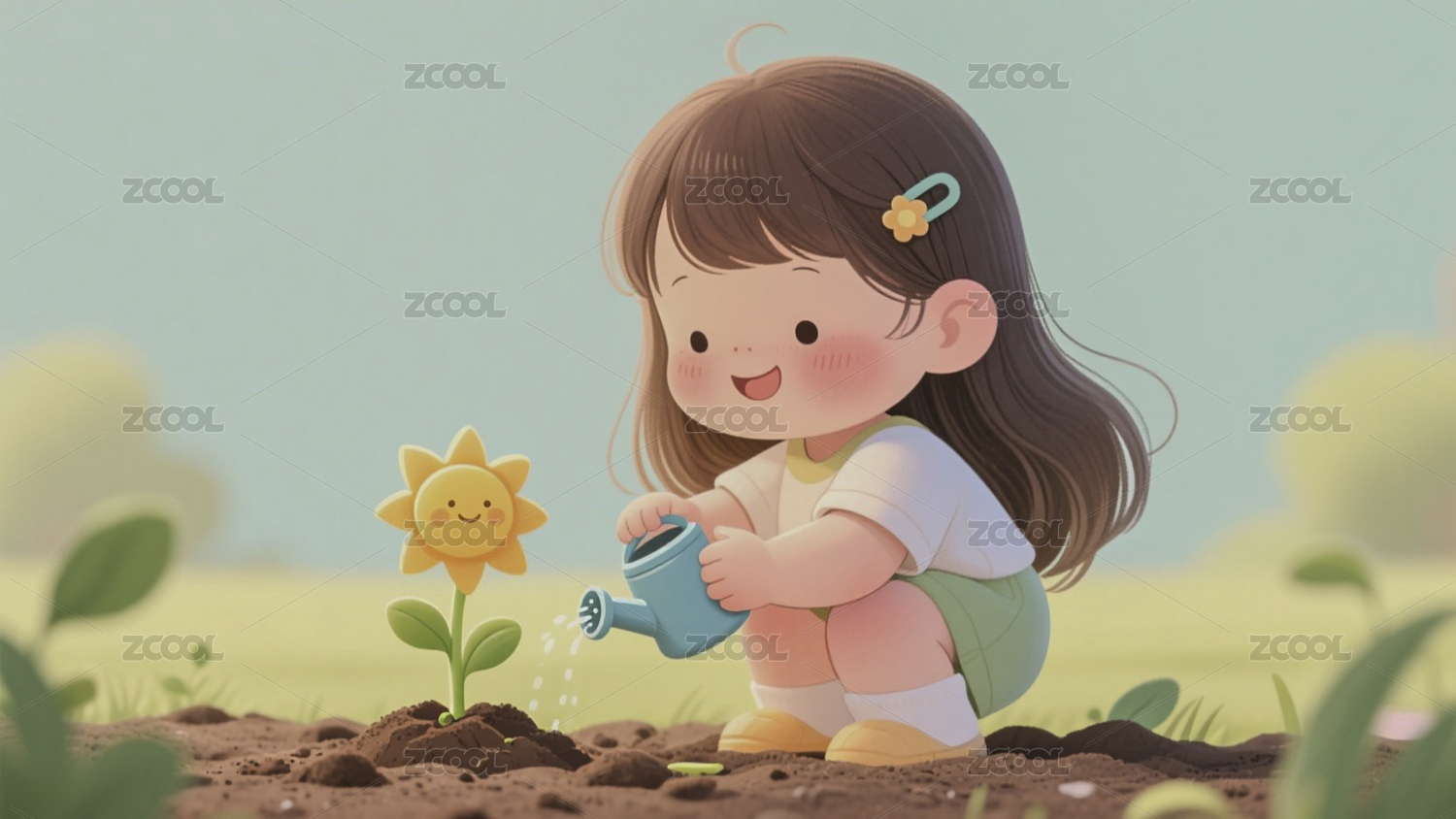 田园园艺浇花插画