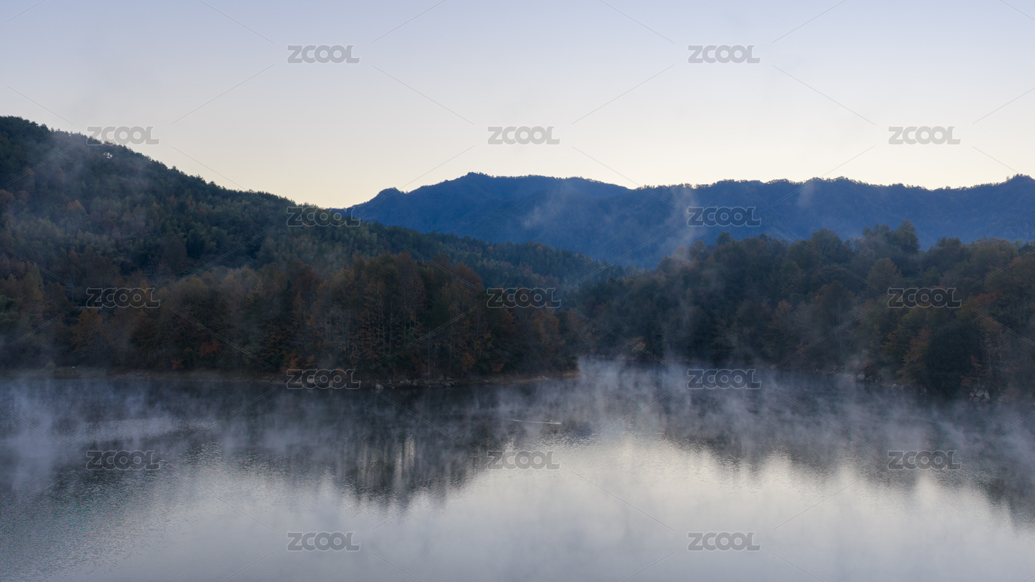 安徽黄山市黟县奇墅湖日出晨雾航拍