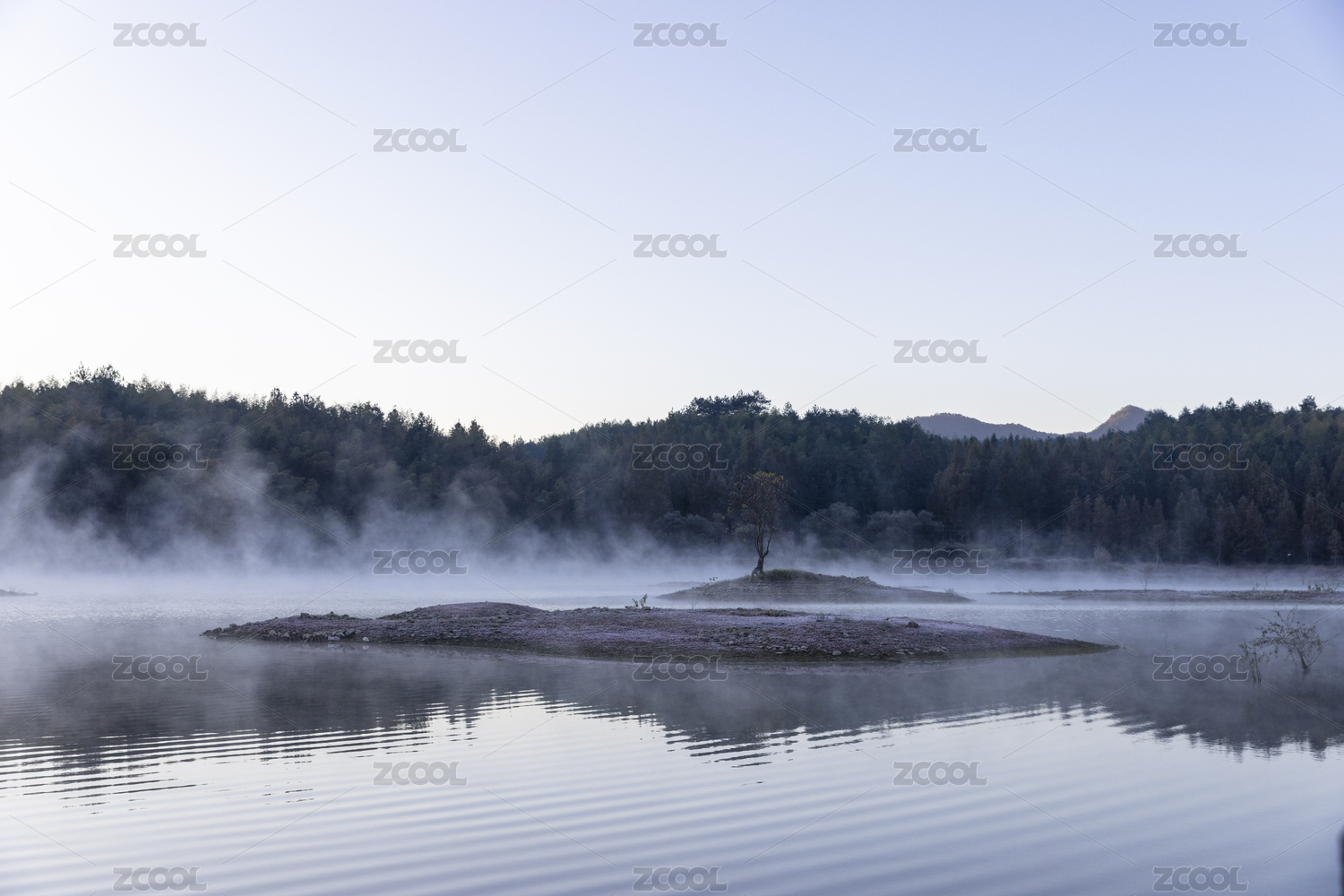 安徽省黄山市黟县宏村奇墅湖日出晨雾风光