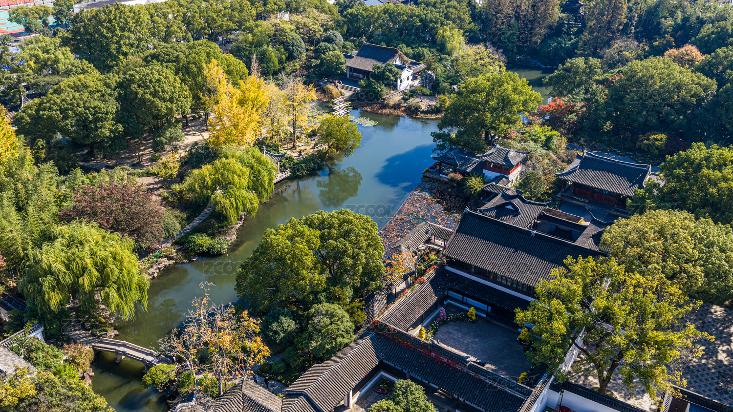 航拍苏州小桥流水江南中式古典园林甪直古镇