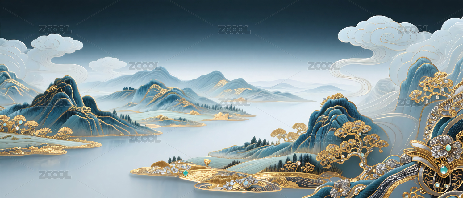 金色金箔山水背景