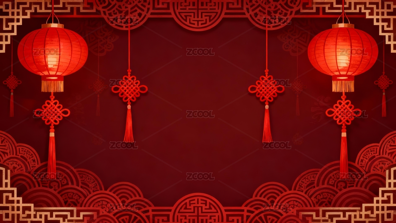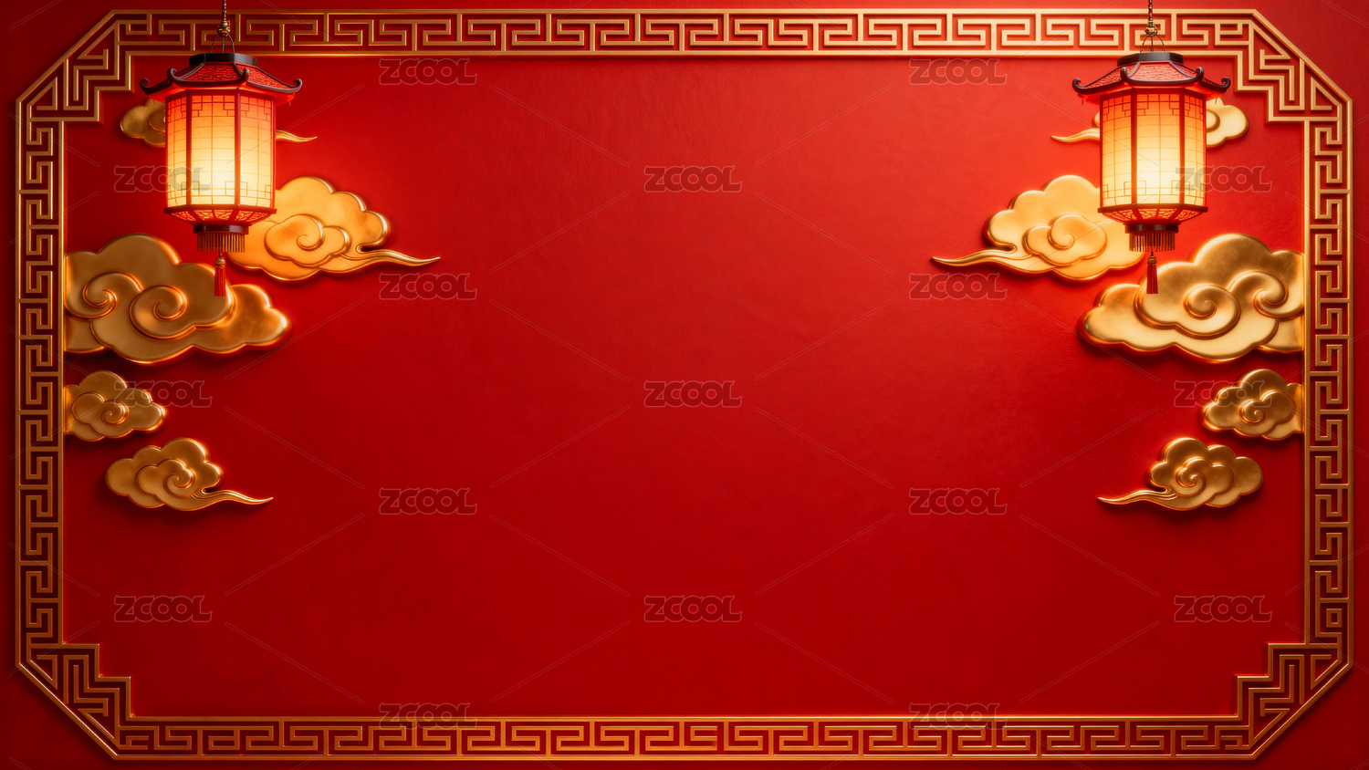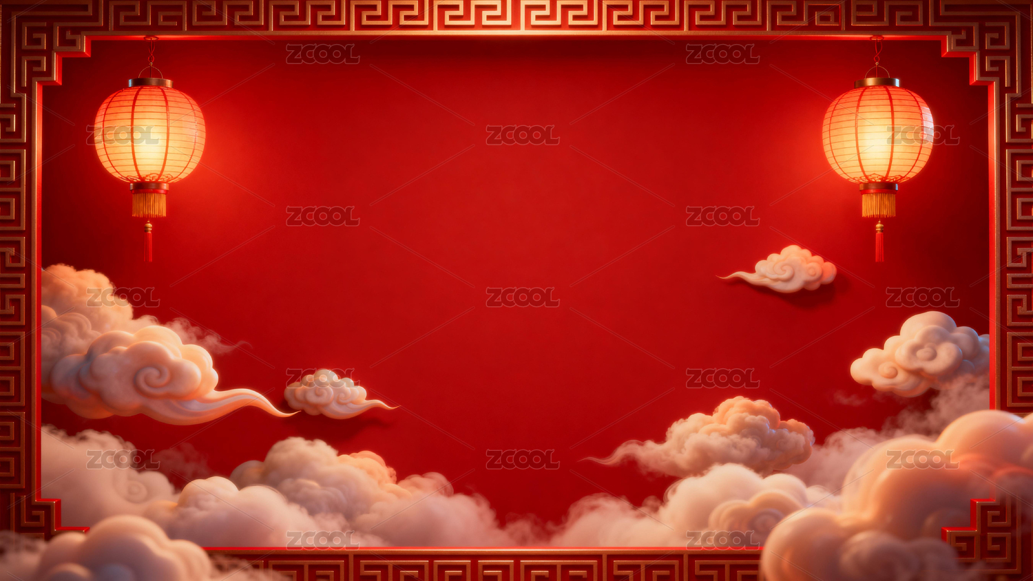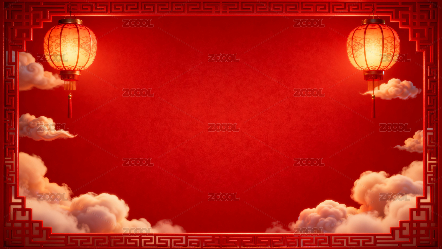 红色背景下的中式灯笼云纹装饰