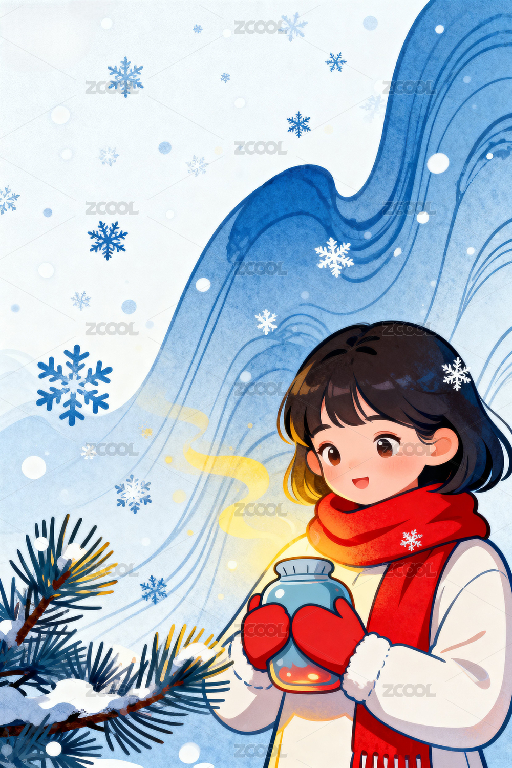 冬季唯美雪景卡通插画