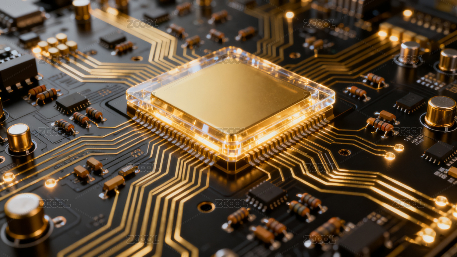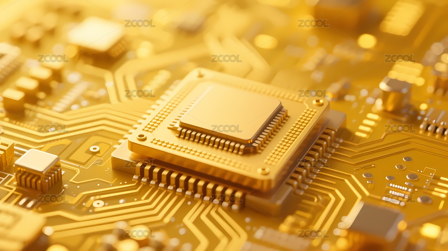 金色芯片与电子元件