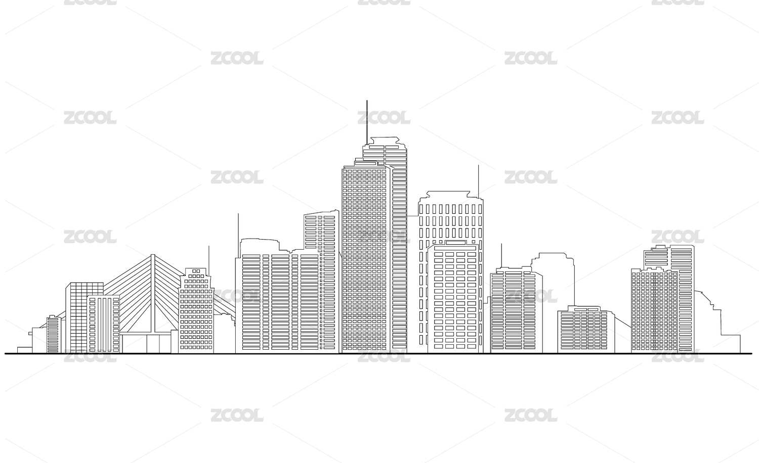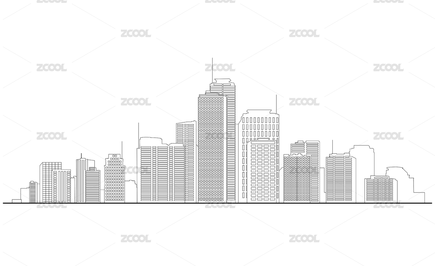 城市,天际线,手绘,轮廓,建筑,高楼,都市,线条,现代,简洁