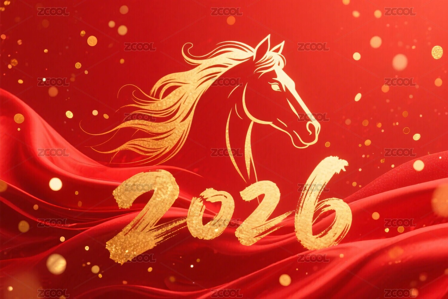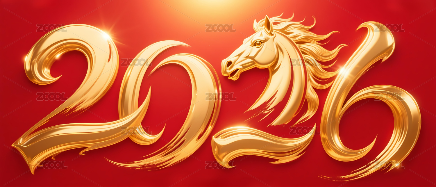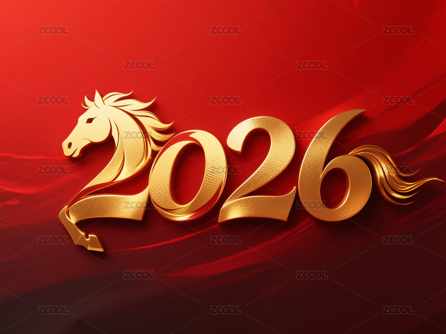 2026,马头,金色,红色背景,3D设计,节庆,新年,庆典,现代感,数字装饰