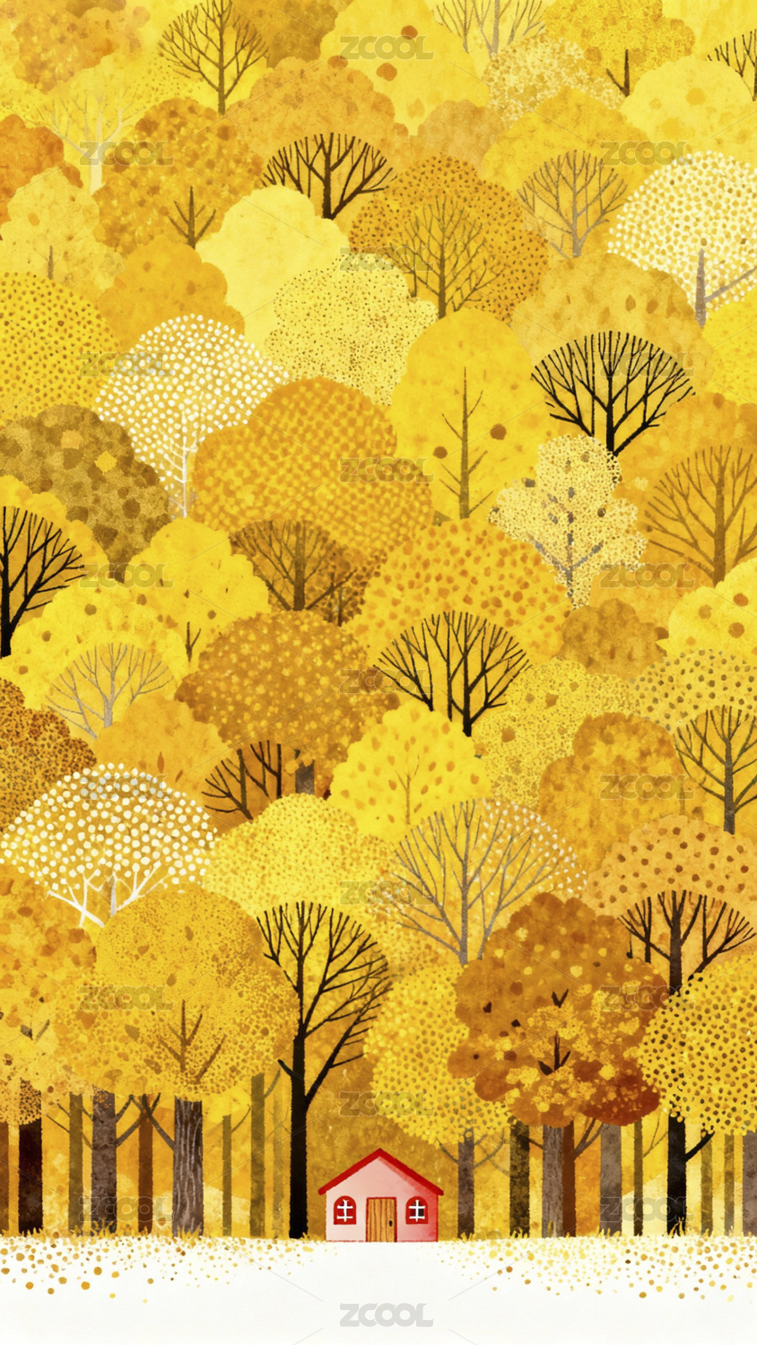 森林,树木,秋天,针叶树,阔叶树,红色屋顶,小房子,草地,自然风光,秋景