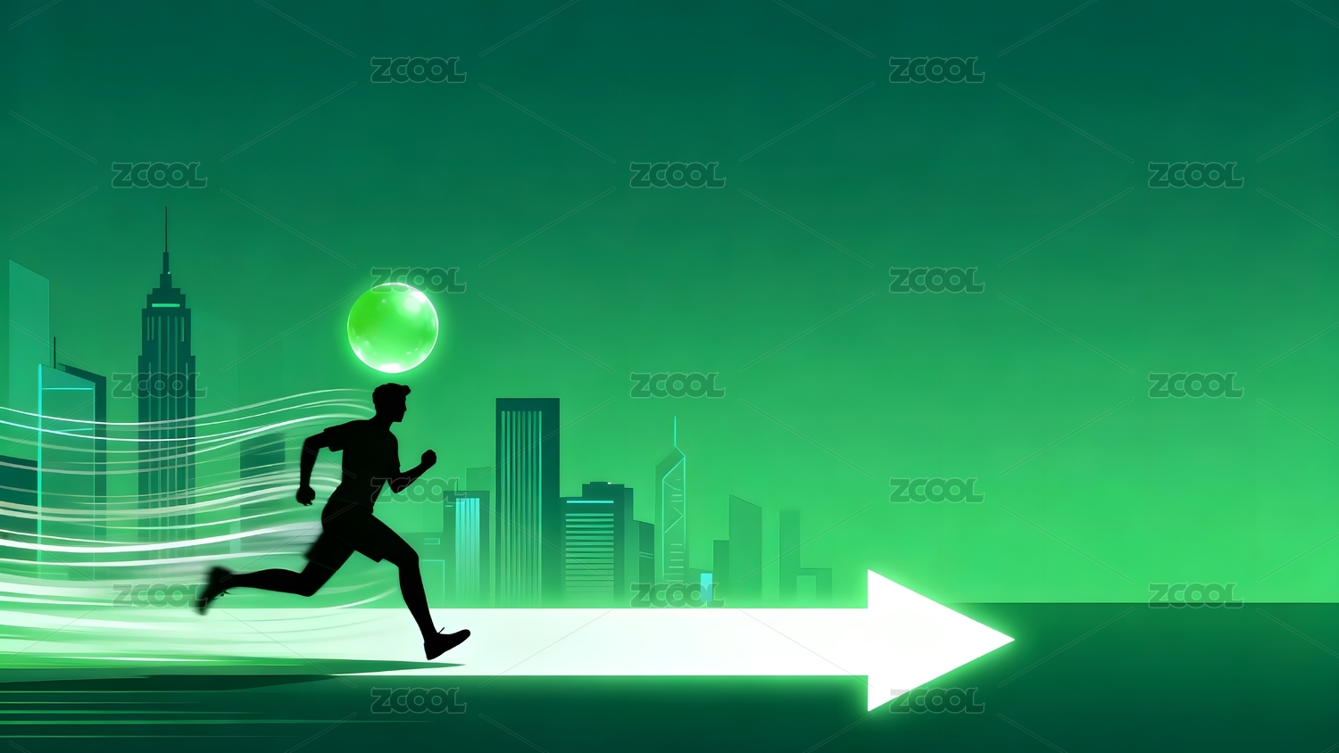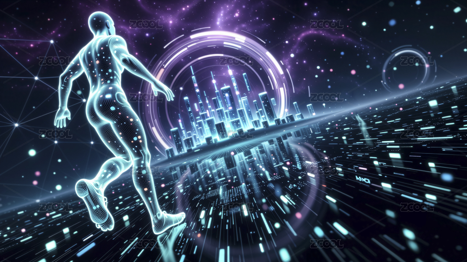 蓝色发光数字化人类跑向未来赛博城市天际线