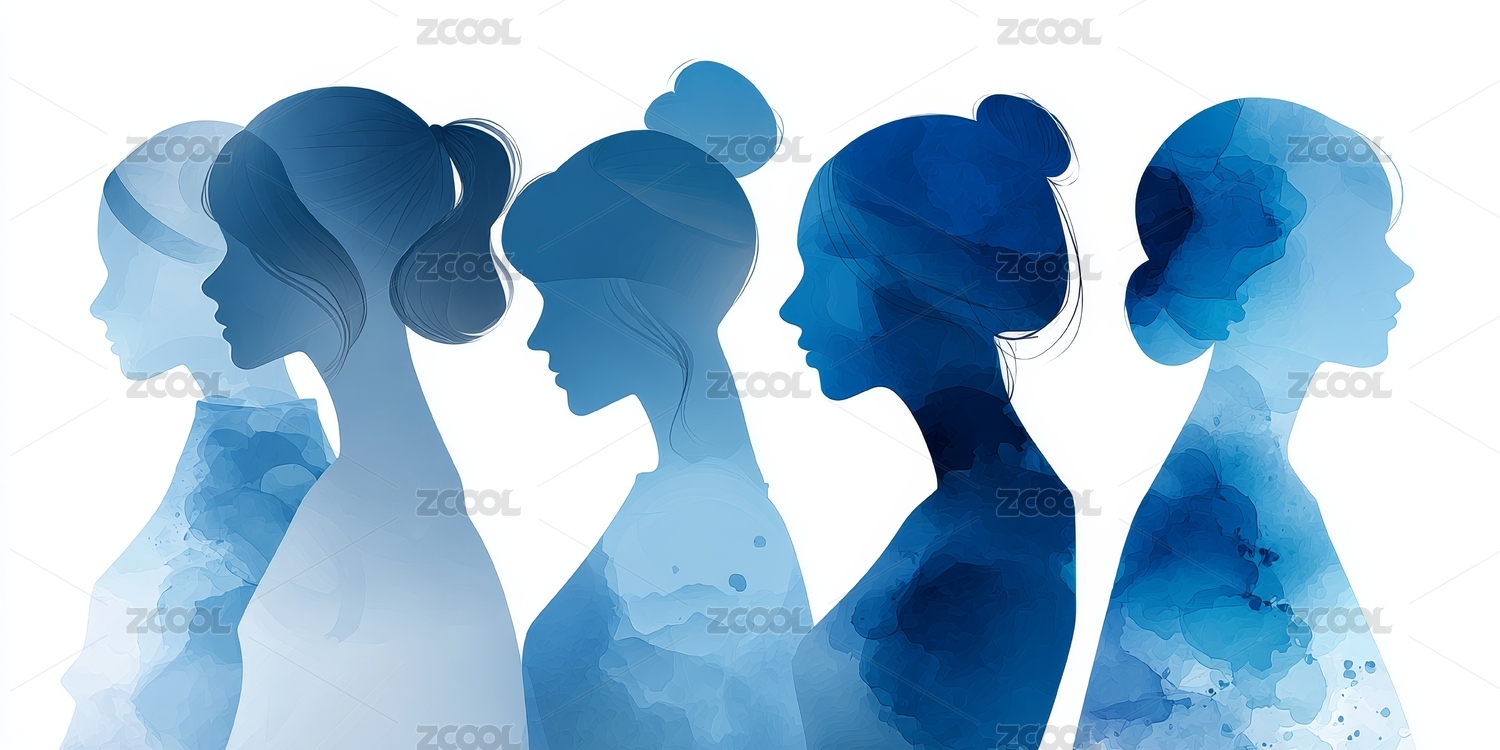 水彩风格的女性多样剪影