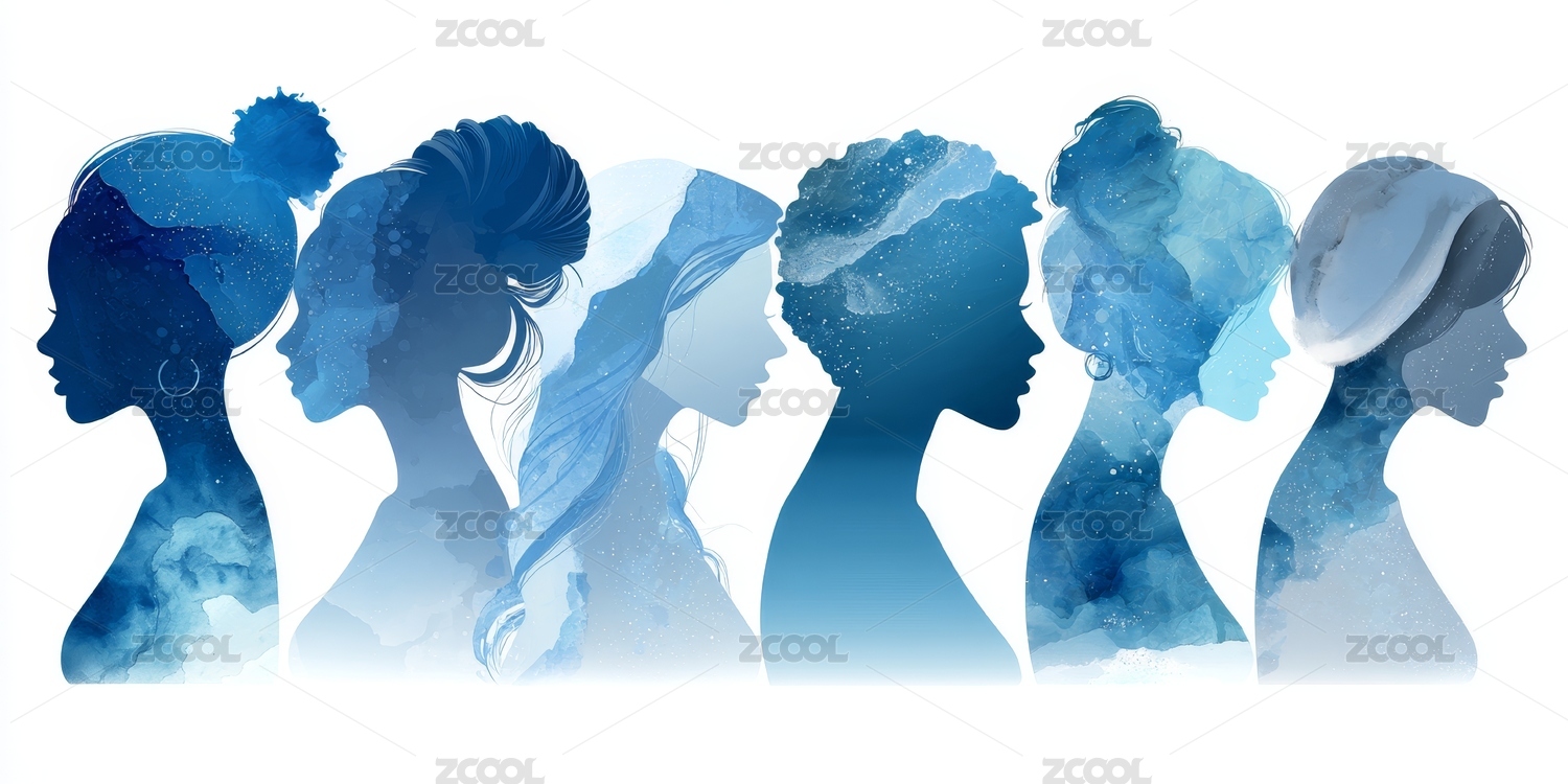 不同发型的女性蓝色剪影