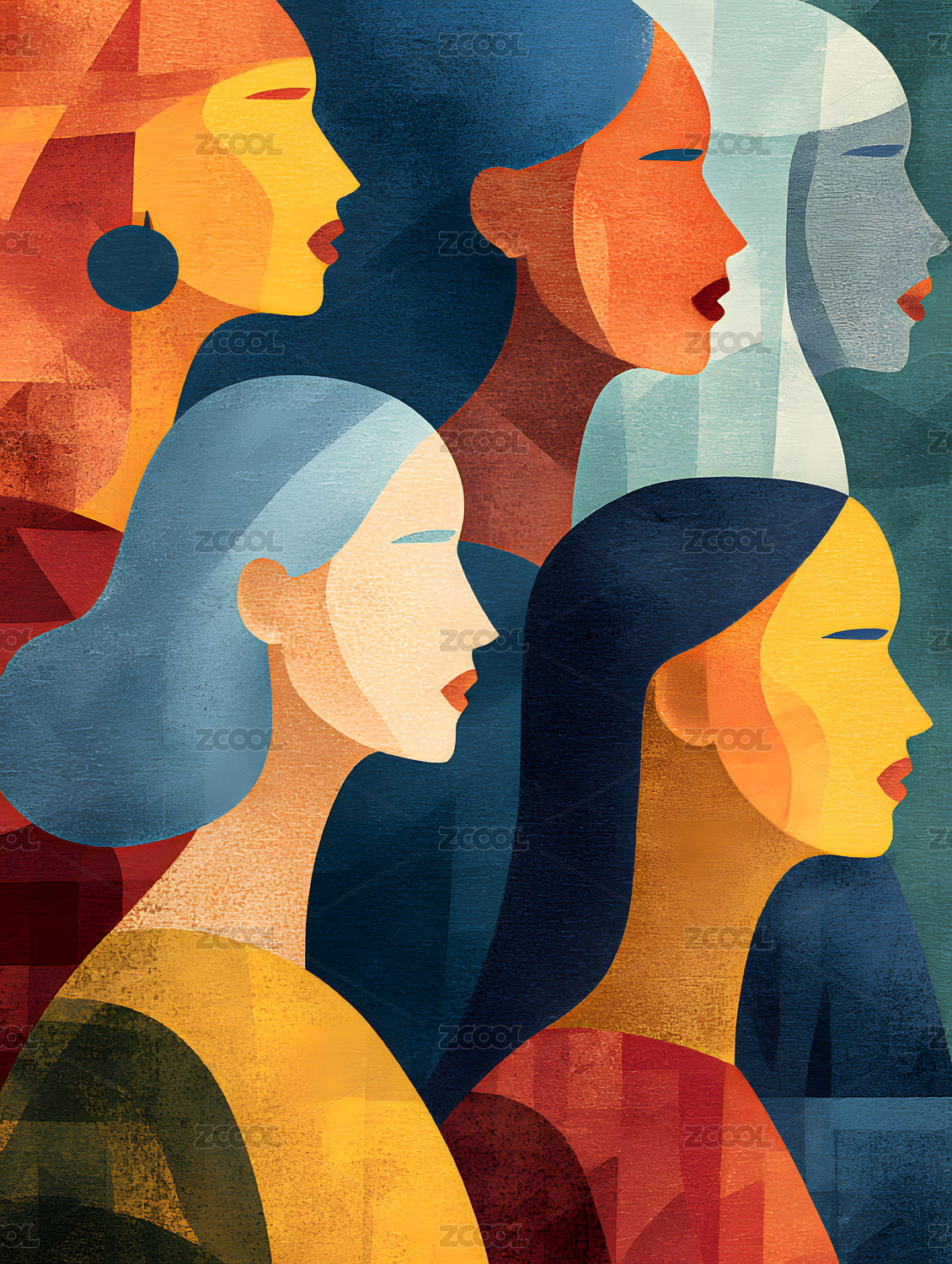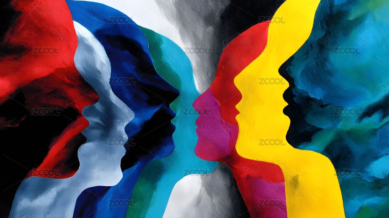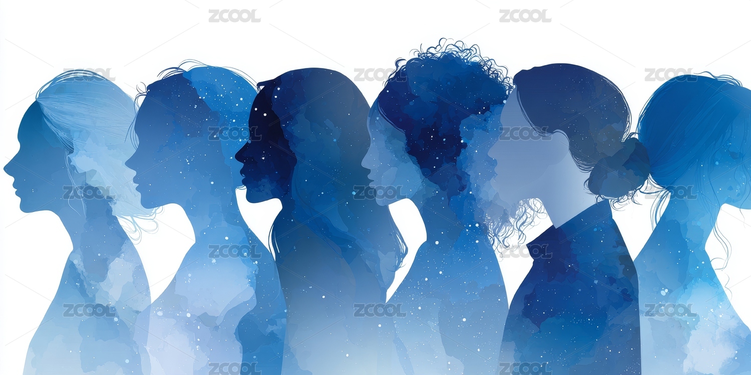 女性,剪影,侧脸,轮廓,多元,多彩,群像,抽象,艺术,花纹