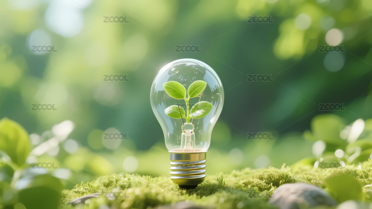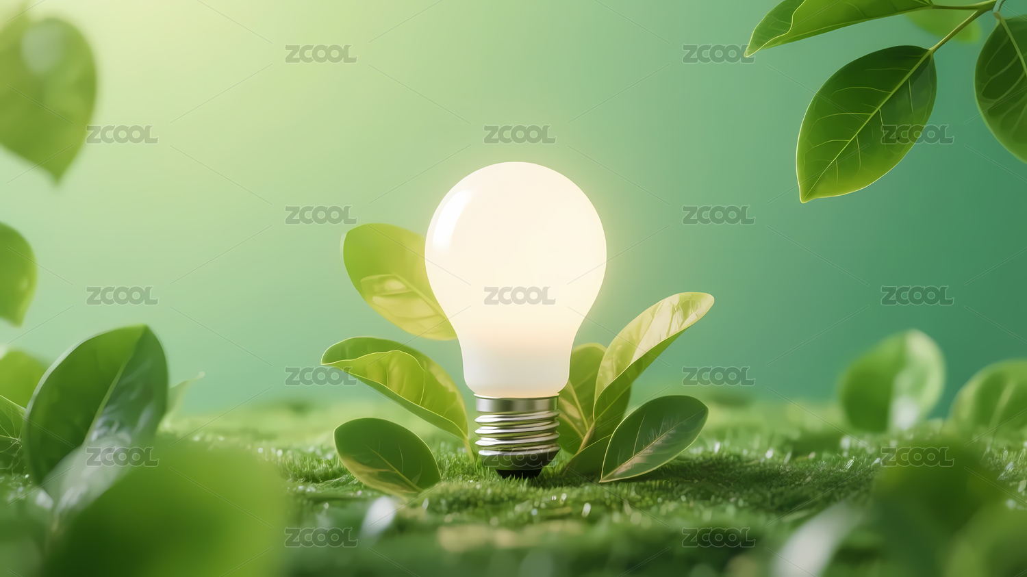 绿色灯泡与环保植物