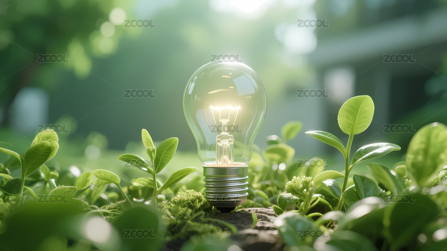 白黄发光灯泡自然绿植
