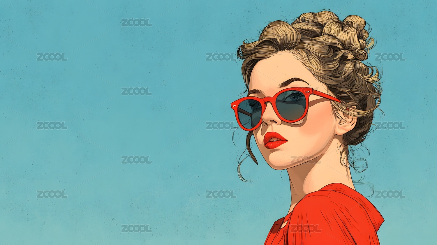 女性,金发,墨镜,花丛,花朵,时尚,蓝墨镜,红唇,花卉,夏日