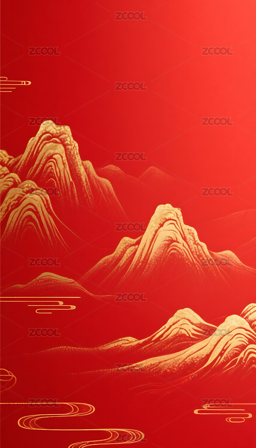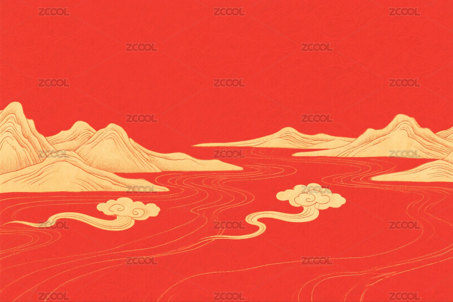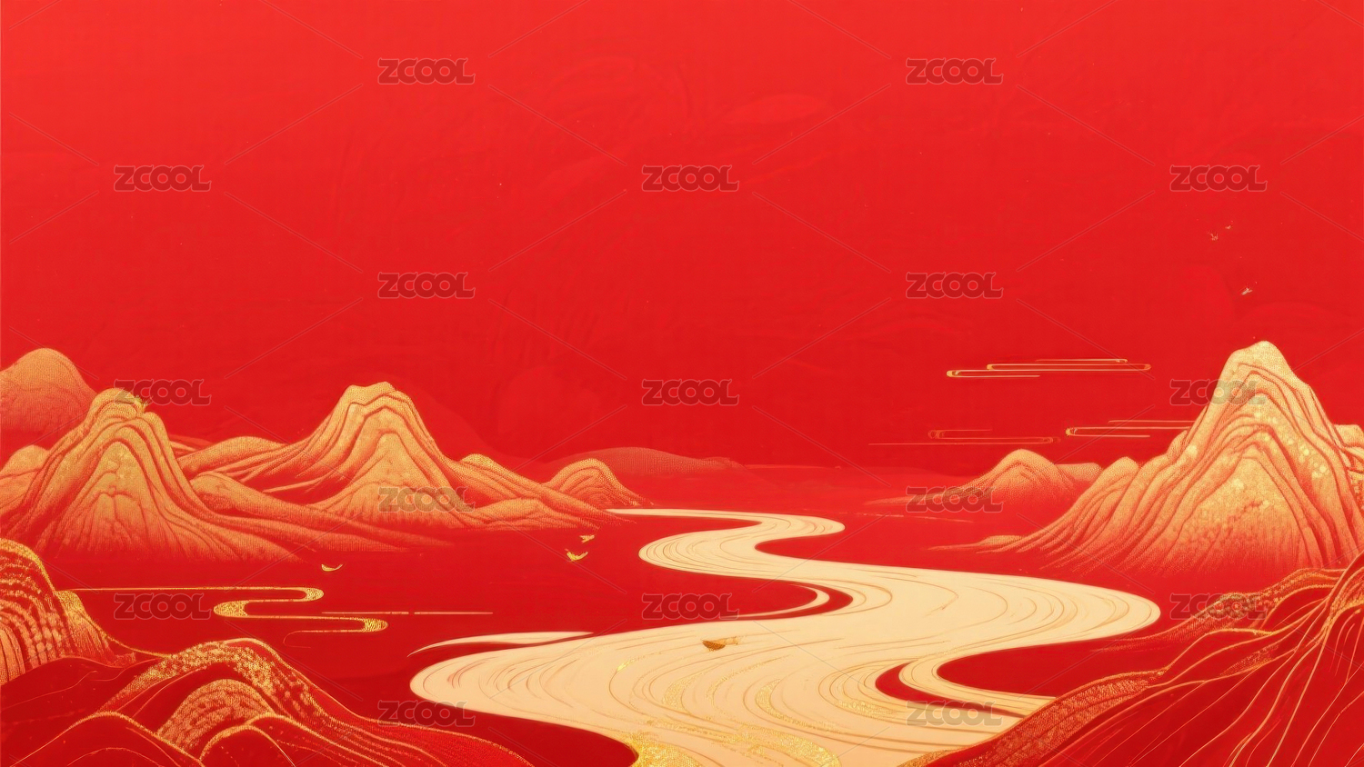 山河,国风,背景,PPT,金色,红色,喜庆,庄重,大气