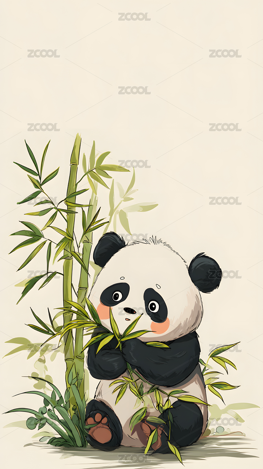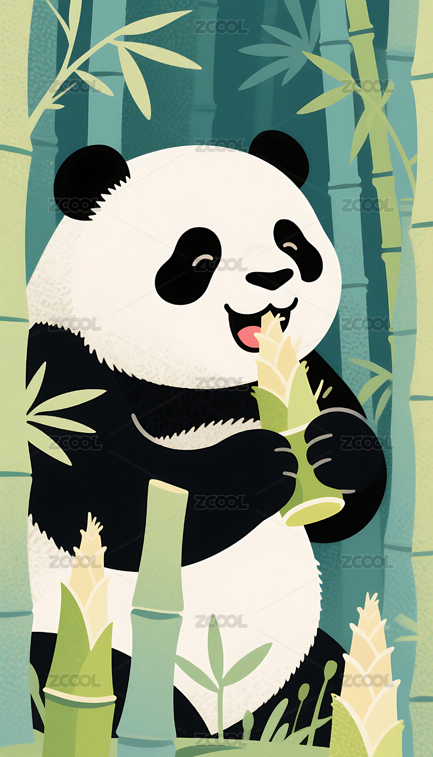 中国风,传统,可爱,熊猫,插画,平面,扁平,场景,户外,写意