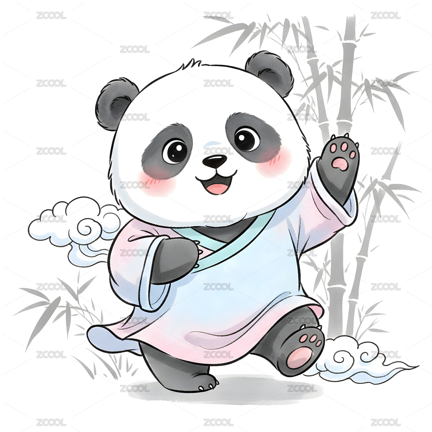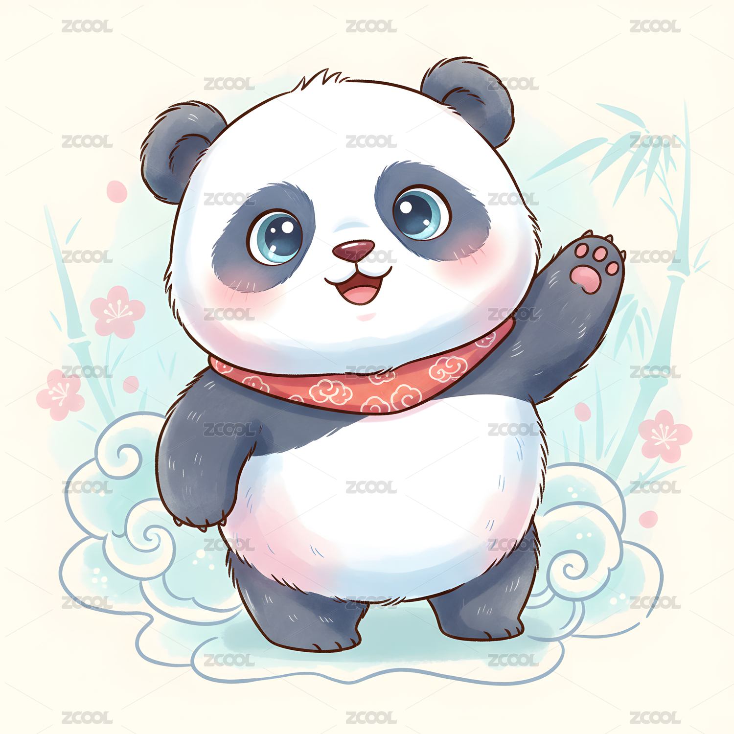 原创手绘卡通熊猫插画海报素材