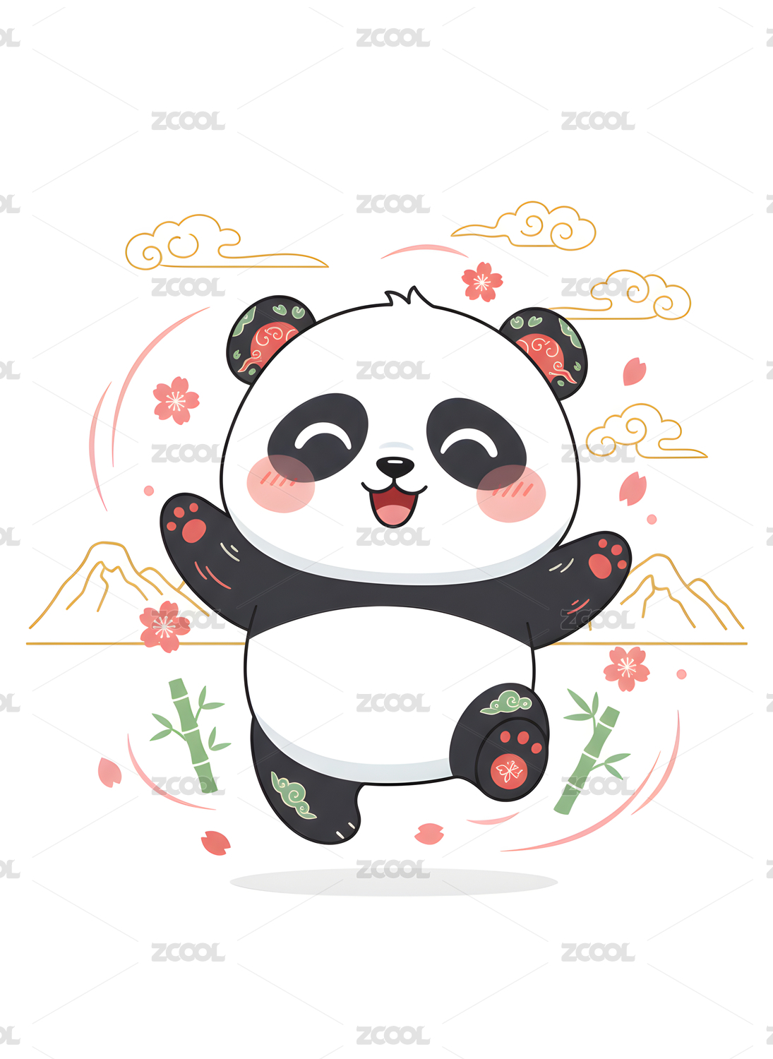中国风,传统,可爱,熊猫,插画,平面,扁平,场景,户外,写意