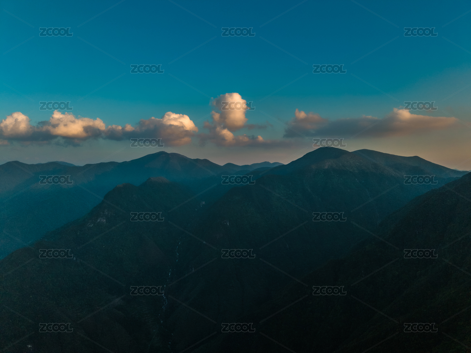 航拍日落时群山对天的景色