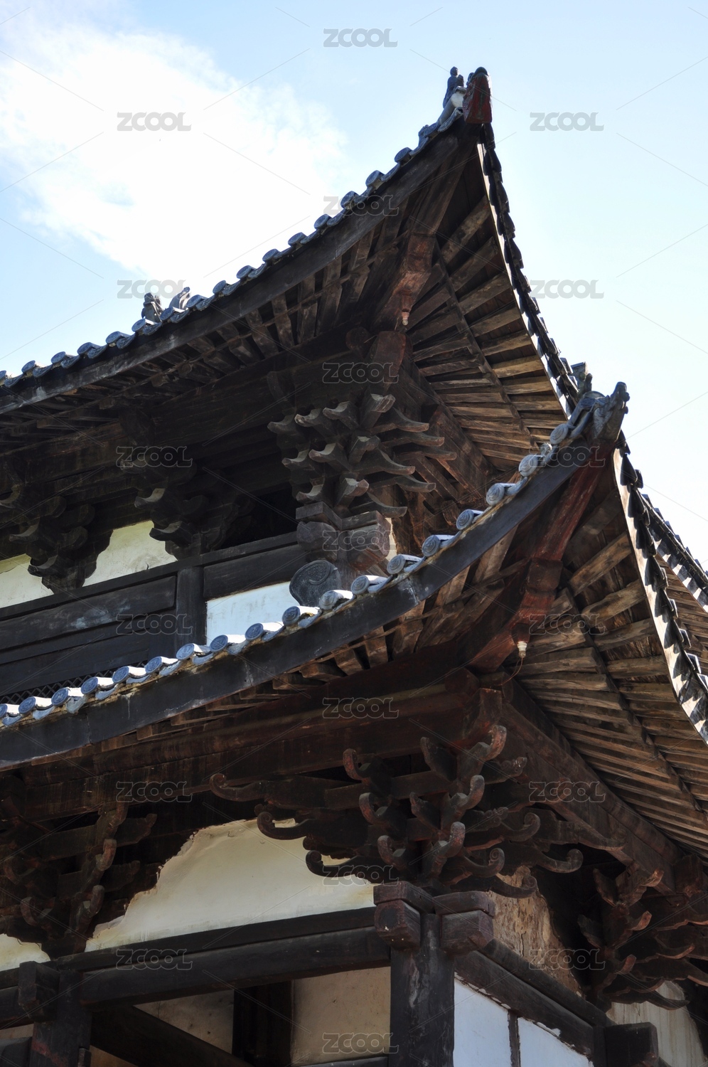 中国山西省大同市云冈石窟阁楼屋檐斗拱建筑