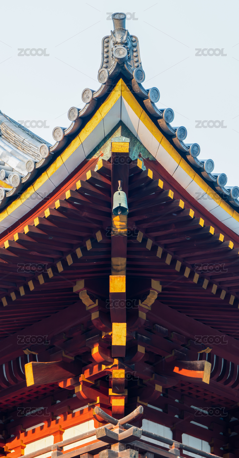 日本奈良兴福寺内神龛建筑屋顶局部特写