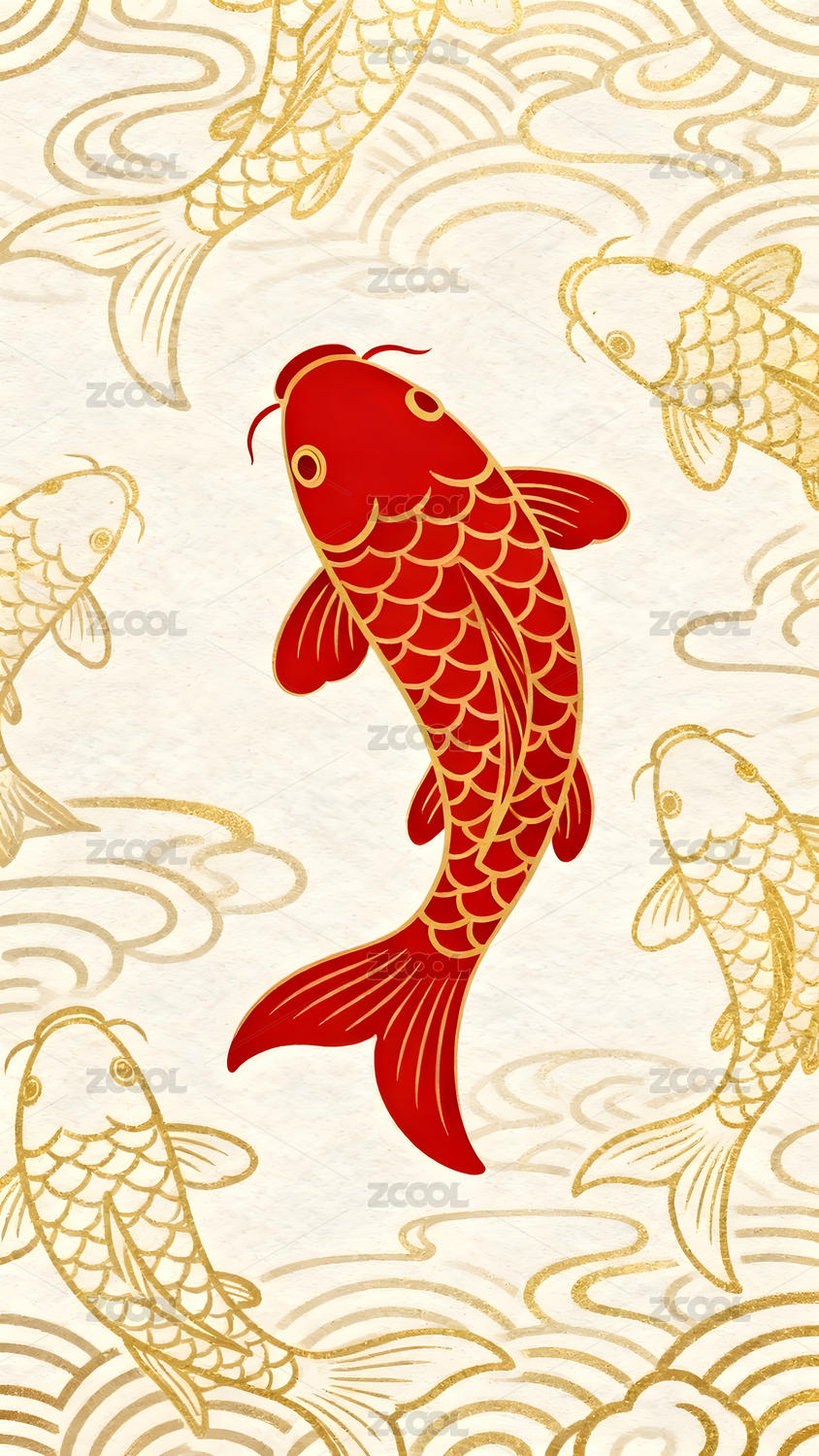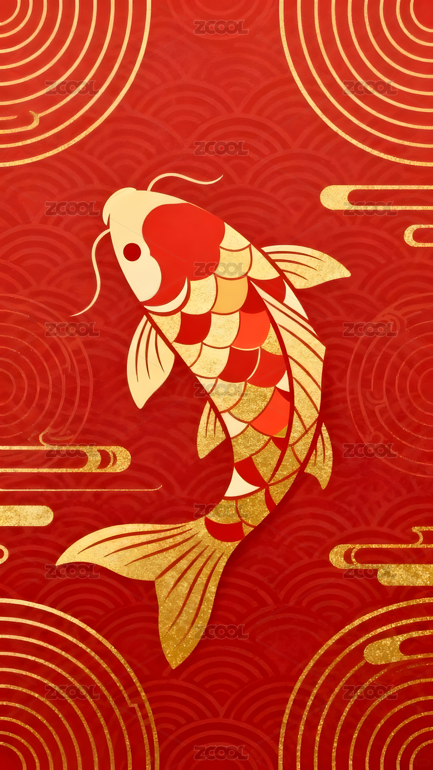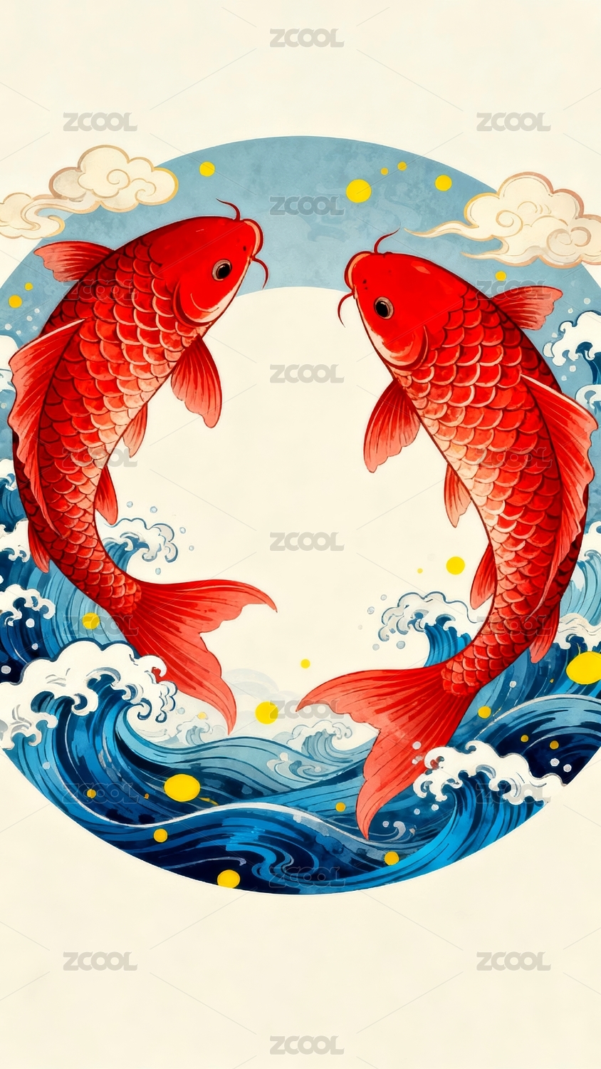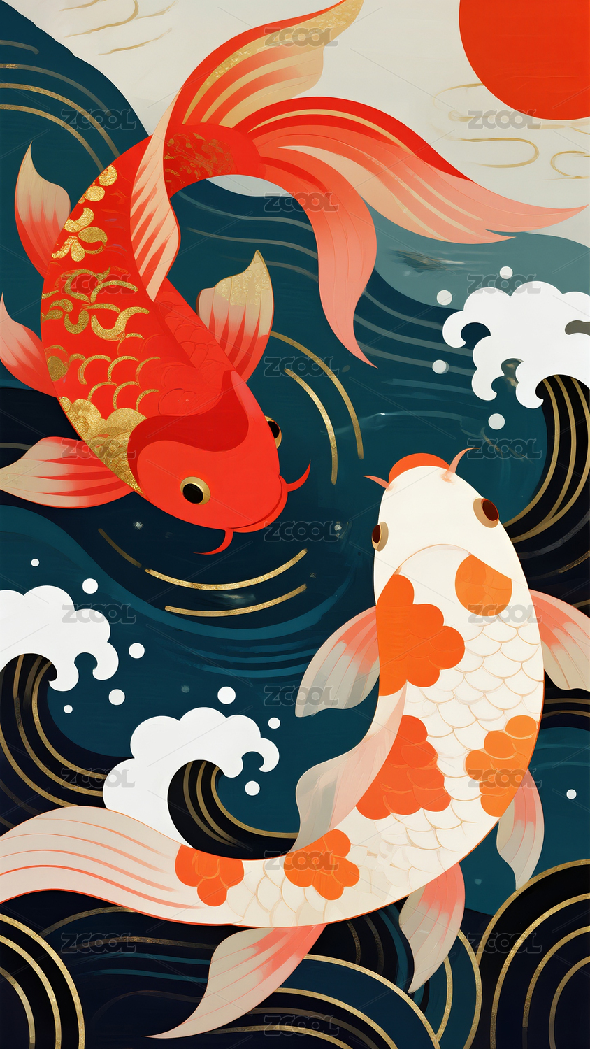 喜庆,锦鲤,鲤鱼,鱼,鱼类,平面,插画,吉祥,寓意,动物