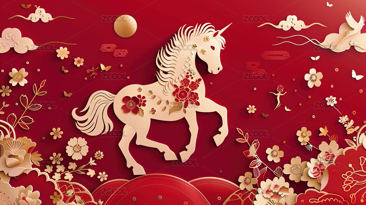 【AIGC】马的剪纸十二属相素材图片