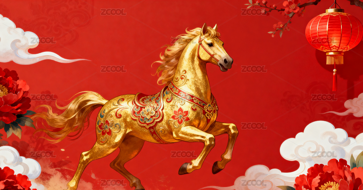 金色骏马奔腾祥云环绕