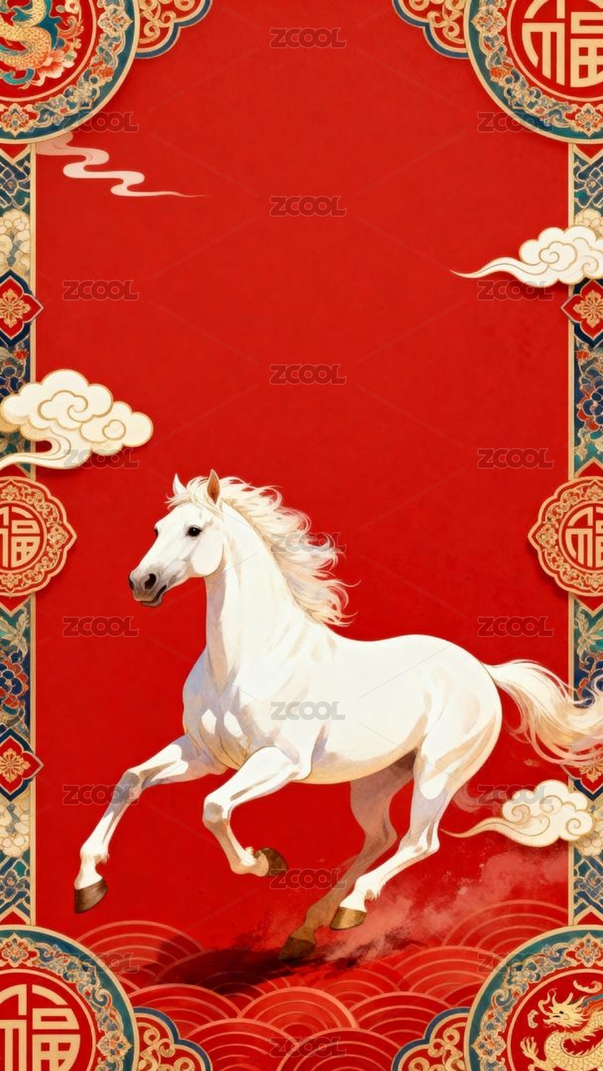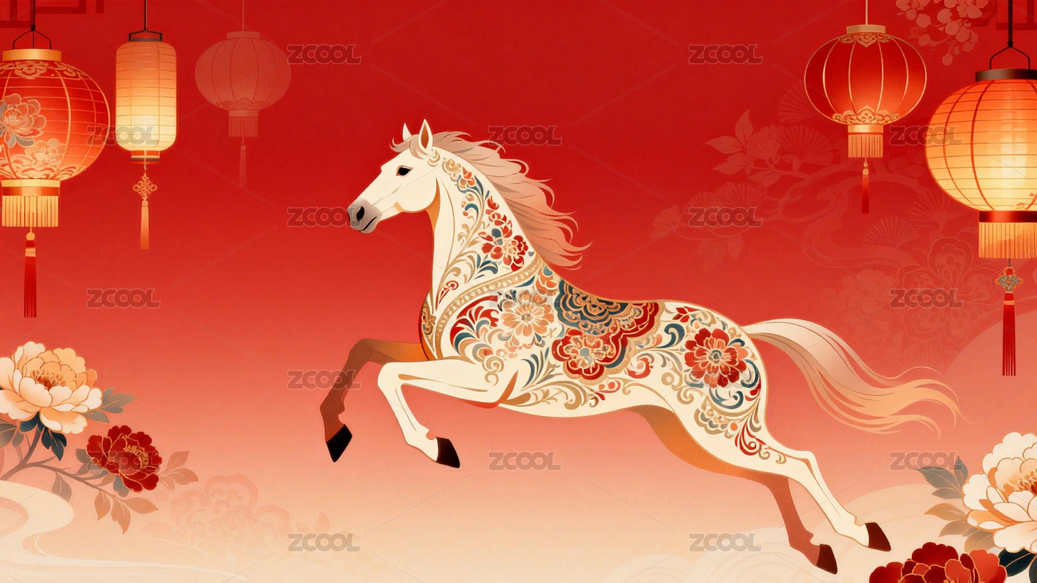 扁平,平面,矢量,插画,马,马年,生肖,动物,红色,春节
