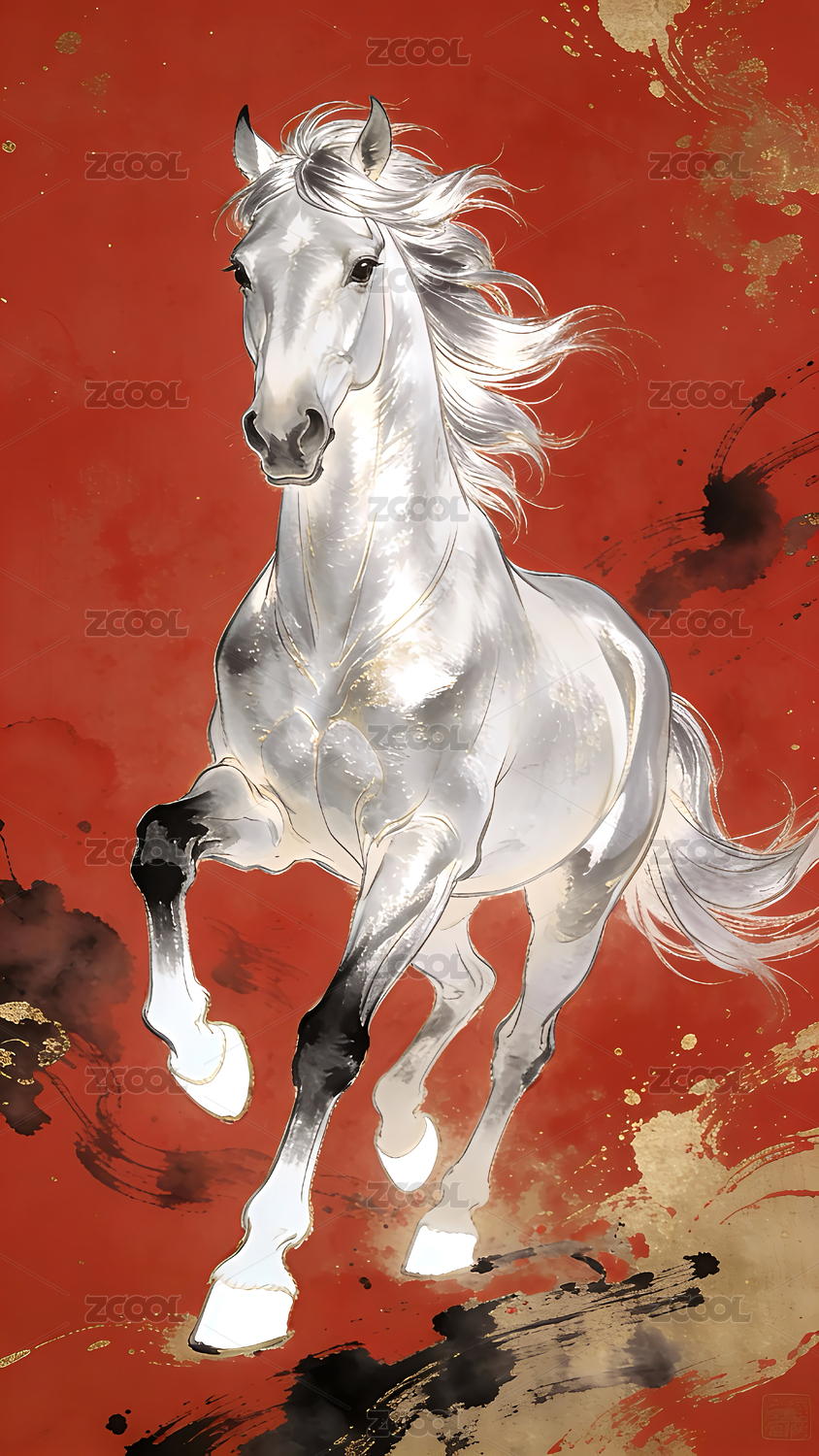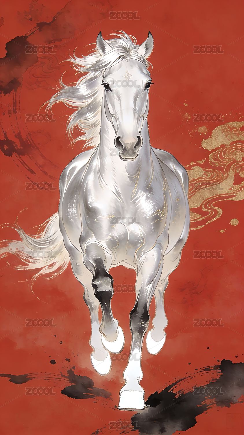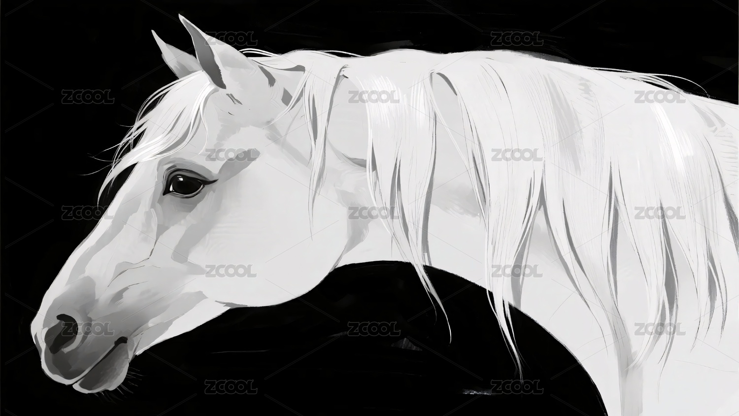 马,生肖,动物,白马,优雅,高贵,华丽,厚涂,艺术,插画