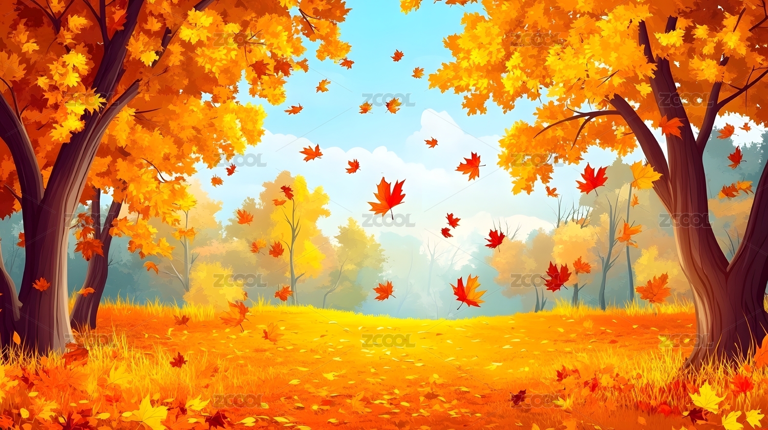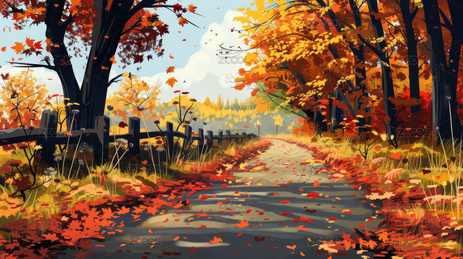 充满奇幻色彩的幽灵徜徉在色彩斑斓的秋季森