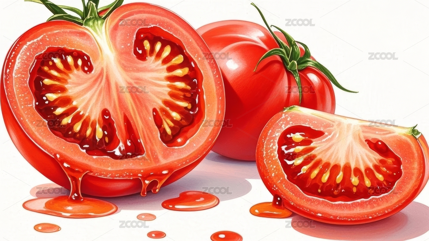 光影,艺术,绿色,红色,果实,果肉,表皮,水珠,叶子,水彩