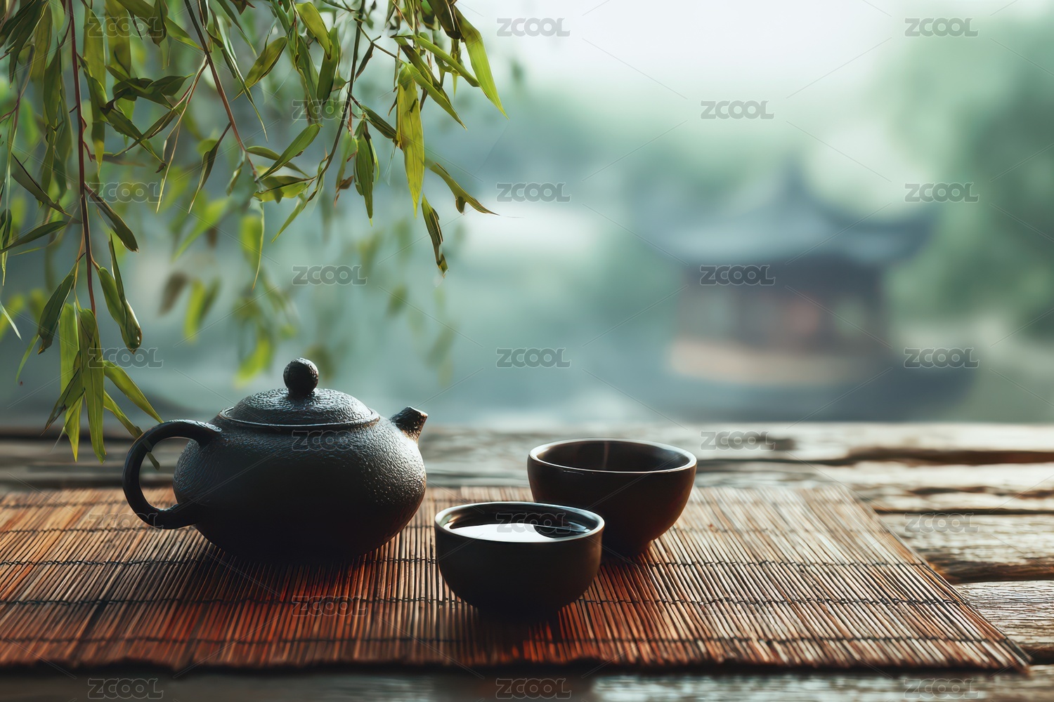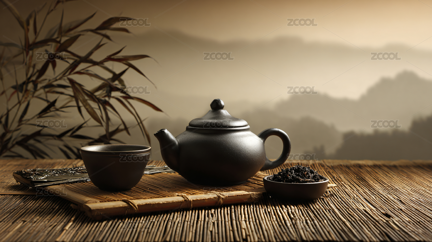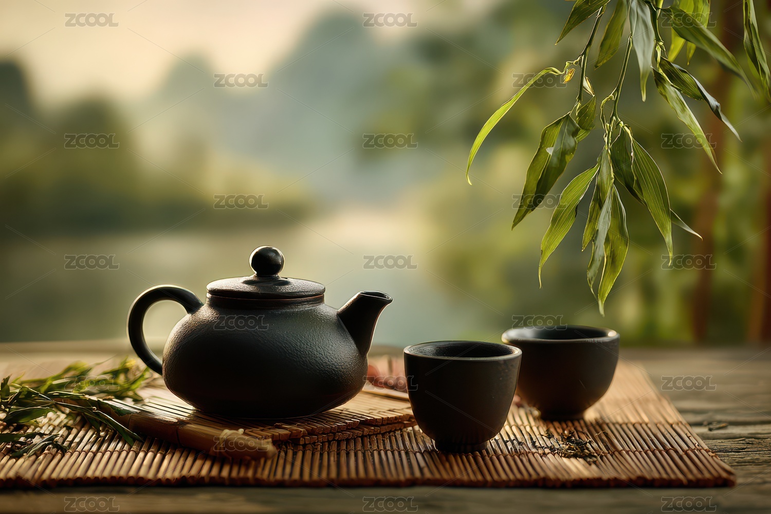 茶叶,茶壶,茶,竹子,托盘,杯子,盘子,叶子,茶园,陶瓷