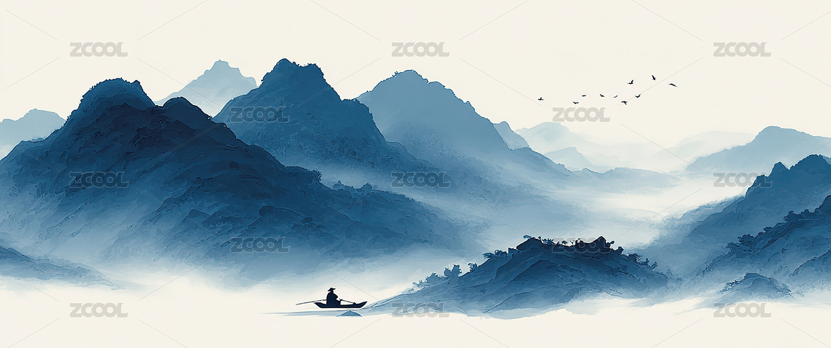 中国风水墨丹青山水风光背景