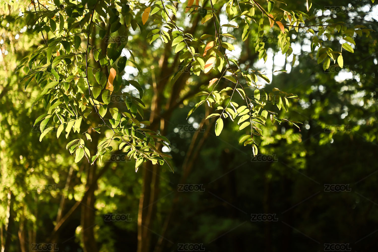 路边,树林,中式,景观,自然,植物,一簇,黄叶,阳光,照射