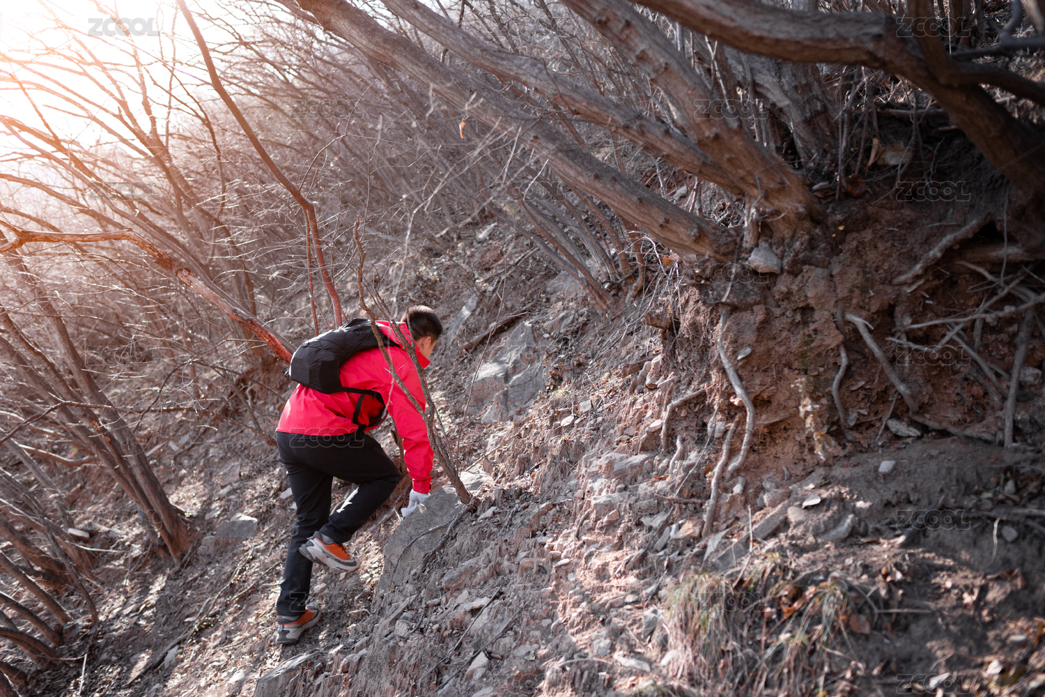 户外运动爬山爱好者在下山