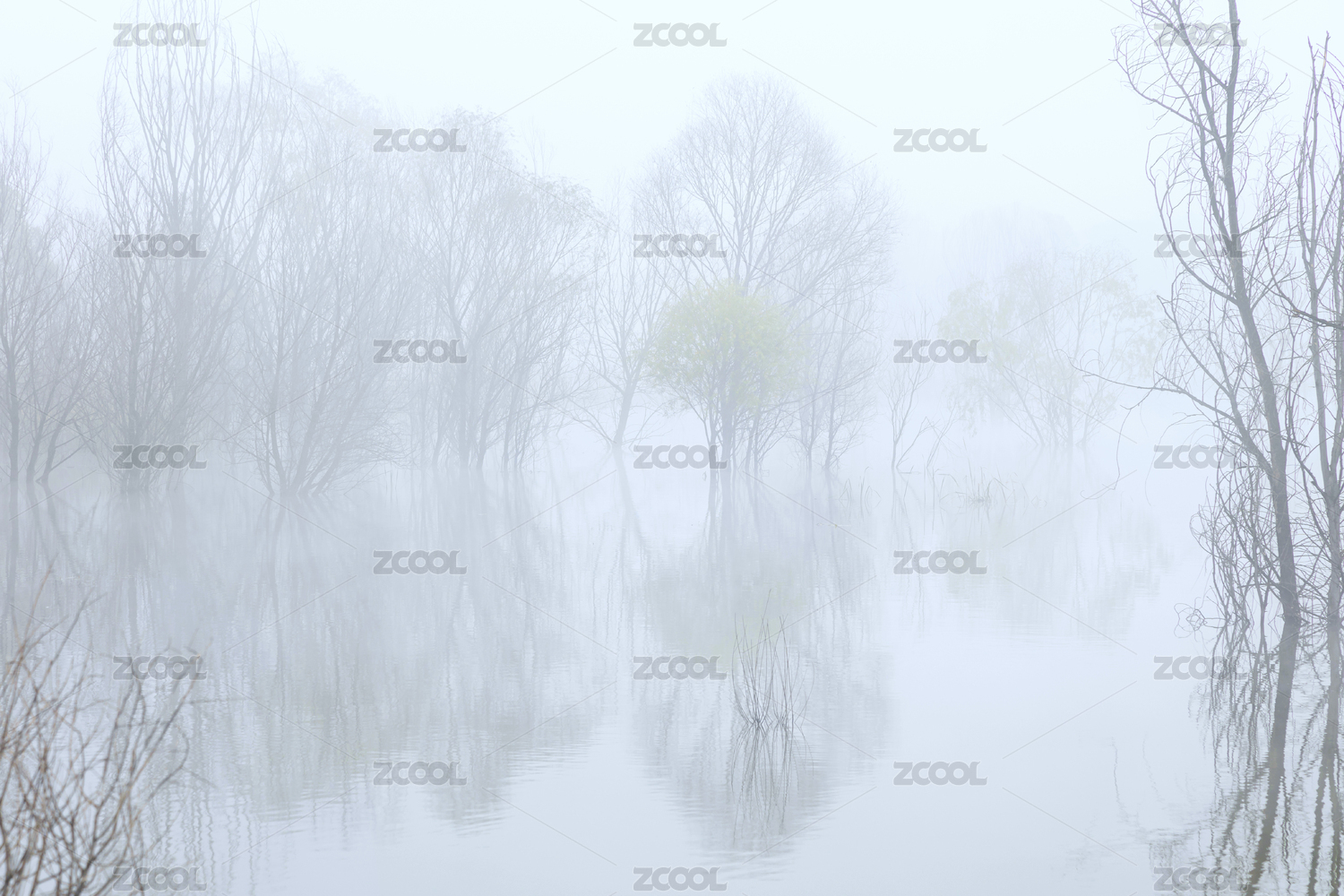 广东省阳江市阳春双滘鸡笼顶风光,迷雾中的枯树