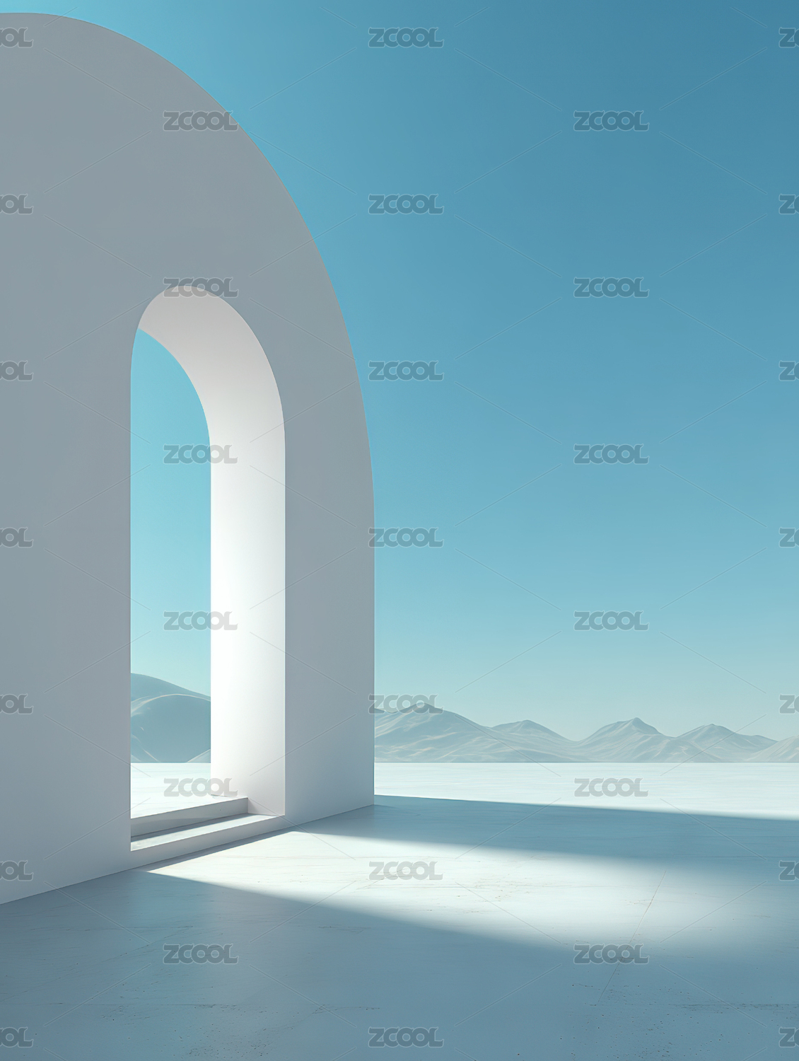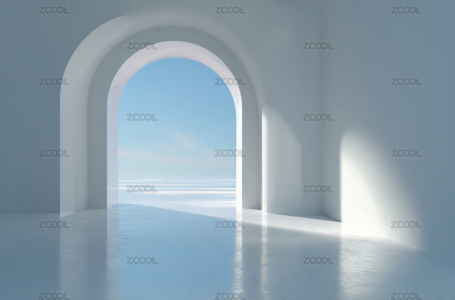 白色拱门通向海洋