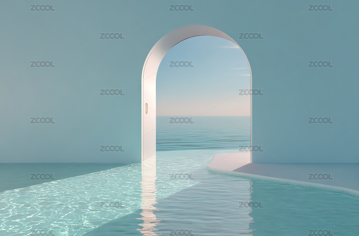 浅蓝色拱门泳池空间